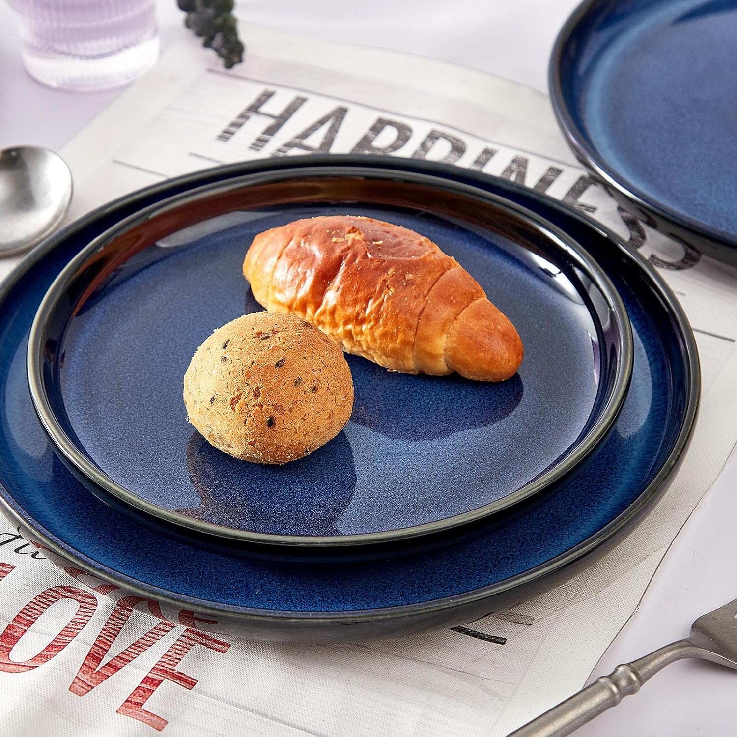 GRANDWISH 8 Inch Ceramic Plates Set of 4, Porcelain Round Dessert Salad Plates, Stoneware Dinner Plates (Blue)
