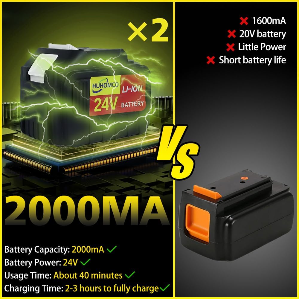 【2pcs High Capacity Batteries】 Cordless grass trimmer with 2×2000mAh high-capacity 24V lithium-ion batteries, which can be used for up to about 1-2 hours continuously. Battery strimmer 500W high power pure copper motor, the speed can reach 8300r/min. (Please charge it fully before the first time you use it.)