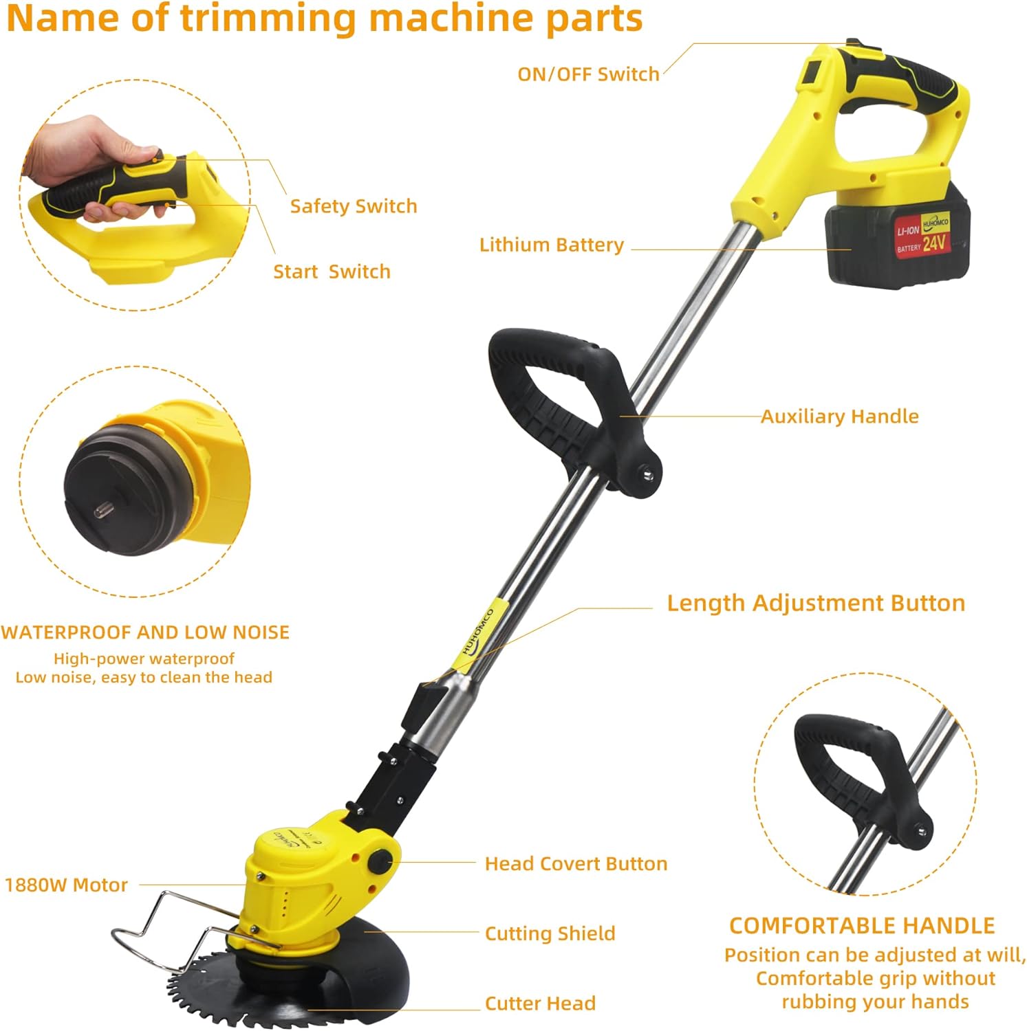 Grass Trimmer/2Pcs 2.0Ah Battery & Charger Battery Strimmer/3 Types Blades Cordless Trimmer Brush Cutter Height Adjustable Lawn Edgers Electric,24V