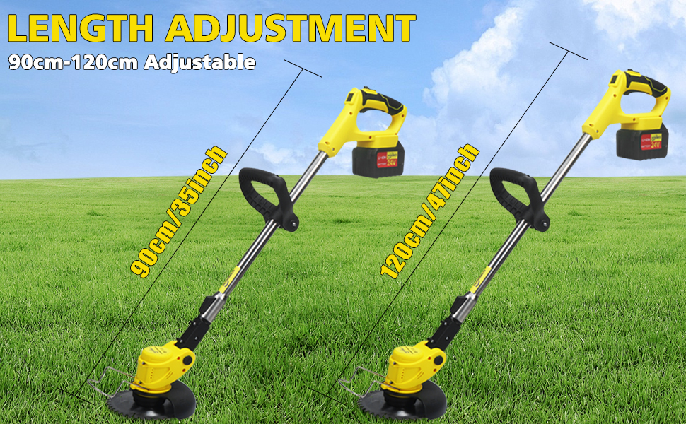 【Length Adjustable 】Adjustable telescopic pole 30 cm (electric Strimmers adjustable total length: 90-120 cm), so you can make the perfect length virtually and get the job done easily, fast and with less strain