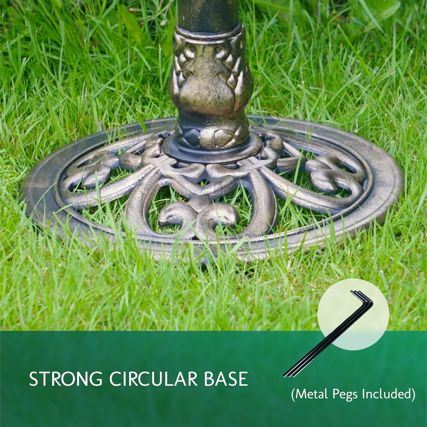 Enhanced Stability: Includes U-shaped ground pegs for lawn stability and a fillable pedestal for added weight on patios or decks. Designed to stay secure in various conditions.