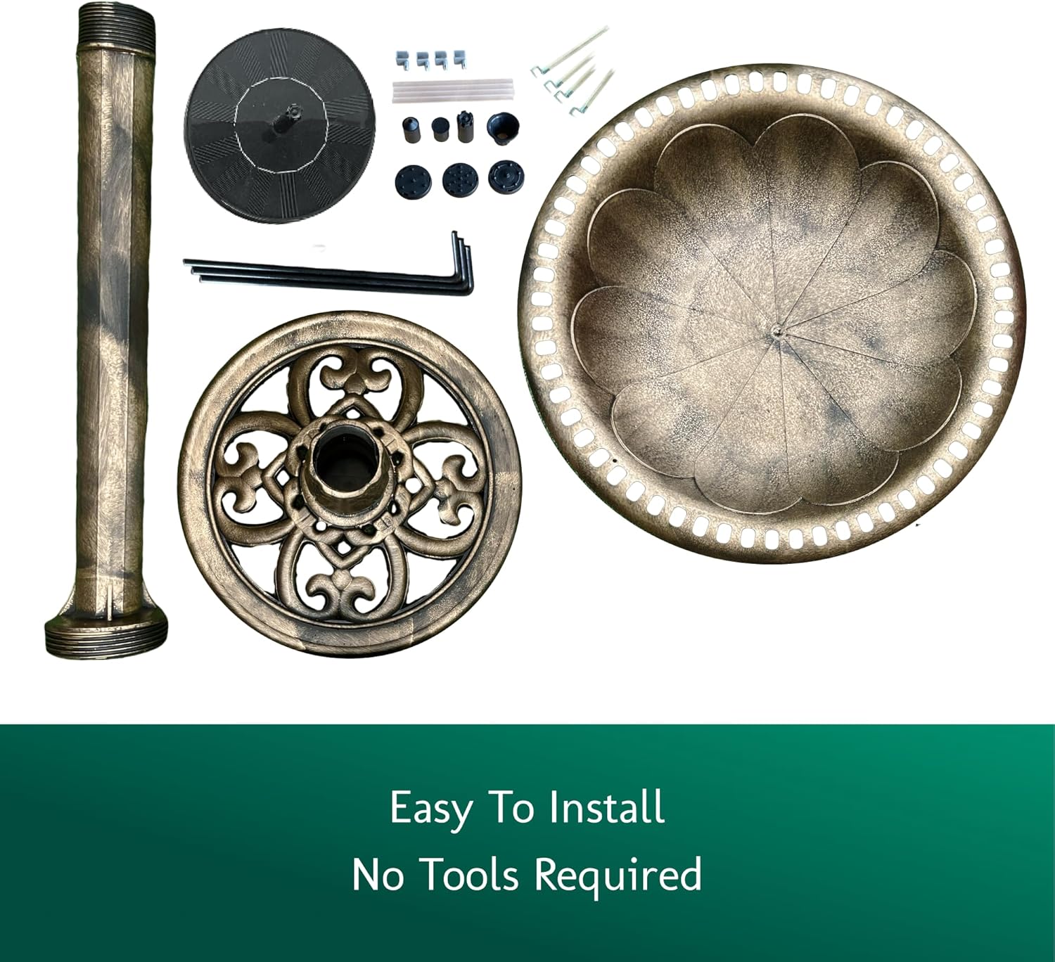 Solar-Powered Fountain: Features a 1.5W solar-powered fountain pump that runs automatically in sunlight, adding a dynamic water feature to your garden.