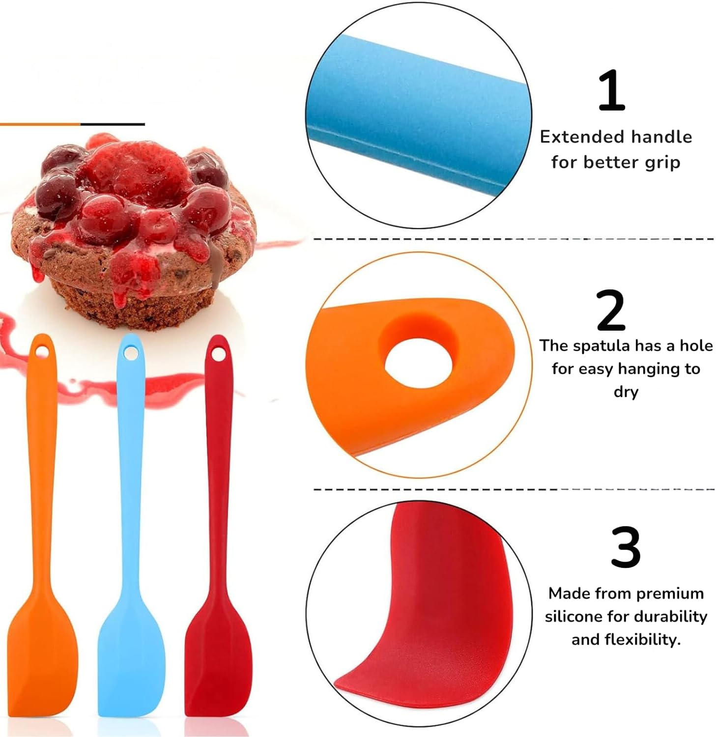 🍳 Easy to Clean: Designed with a seamless one-piece construction, our silicone spatulas leave no residue and are effortless to clean. Simply wash by hand or toss them in the dishwasher. Hang them up after cleaning for quick drying.