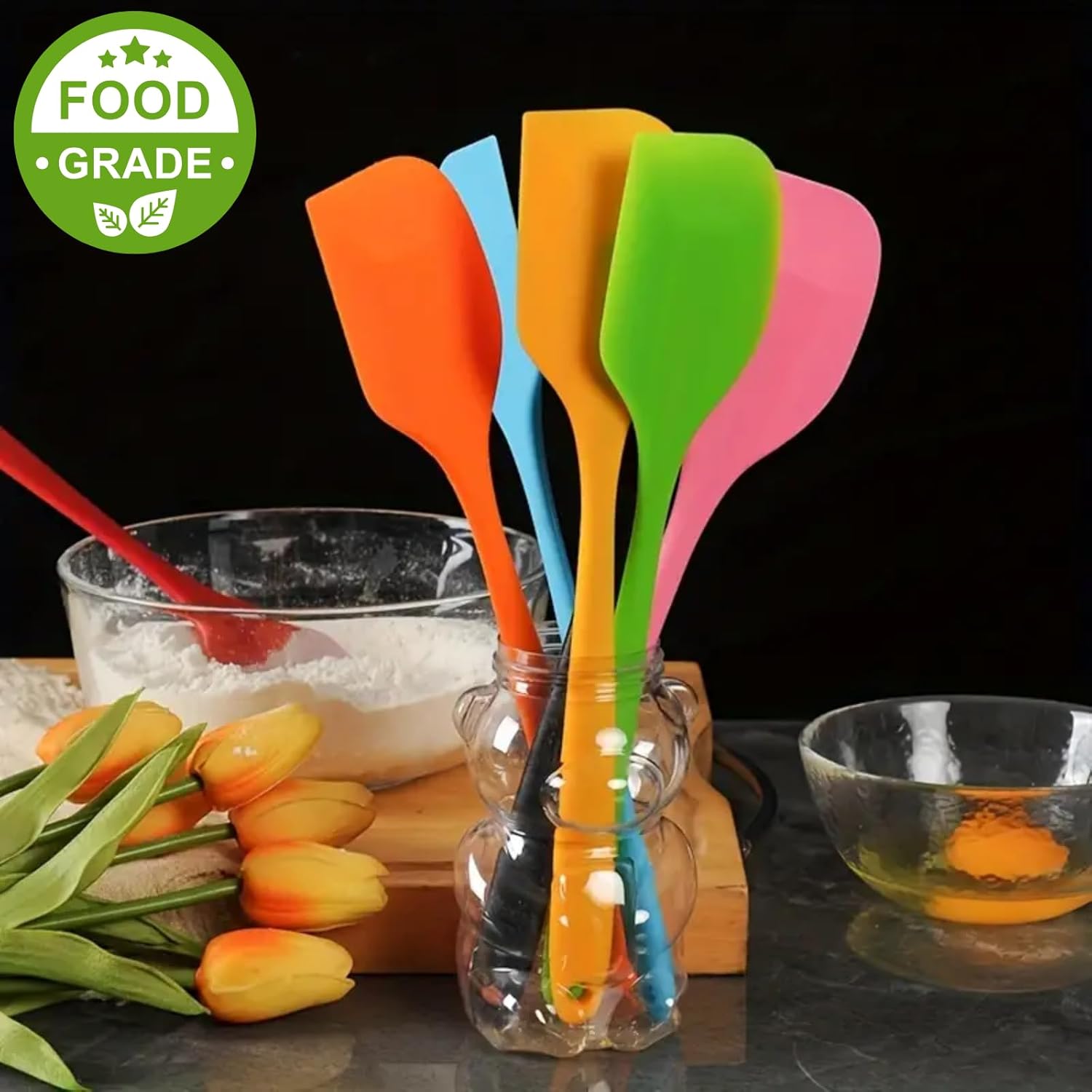 🍳 Food Grade Safe Material: Crafted from 100% food-grade silicone, our GreenMingle spatula set is BPA-free, non-toxic, lead-free, and odorless, ensuring safe and healthy cooking every time.