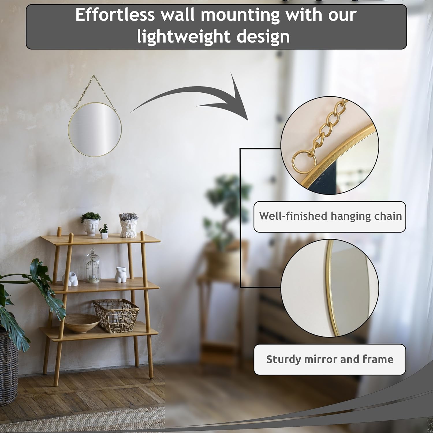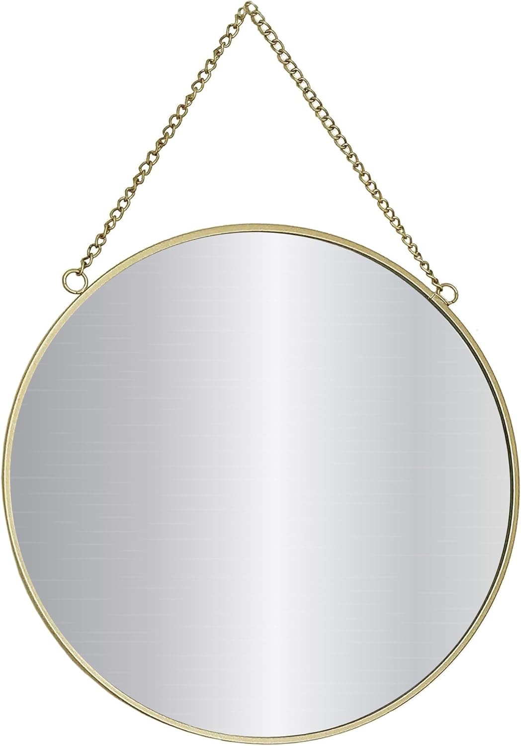 GreyZouq Gold Round Mirror 25 cm, Wall Mirror with Hanging Chain and Metal Framed, Round Wall Mirror for Bathroom, Bedroom, Hallway and Living Room (Gold)
