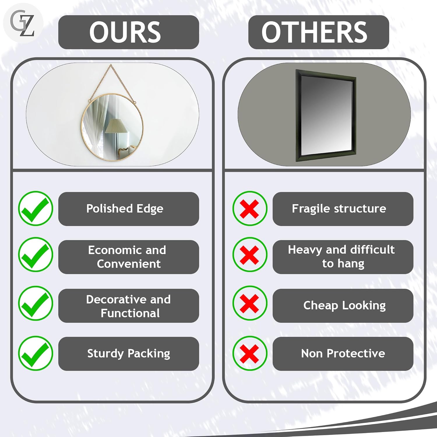 ✅【Install is a Breeze】The lightweight design means, you can easily mount it on the wall.The gold mirror comes with a gold metal chain on the back for secure and stable wall hanging.