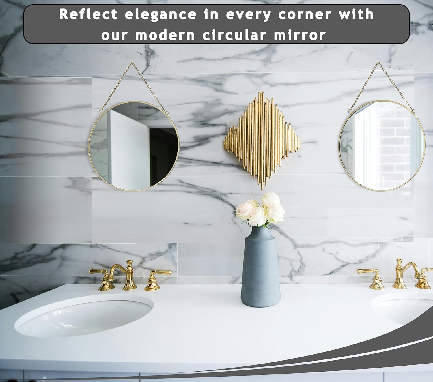 Be the first to review “GreyZouq Gold Round Mirror 25 cm, Wall Mirror with Hanging Chain and Metal Framed, Round Wall Mirror for Bathroom, Bedroom, Hallway and Living Room (Gold)”