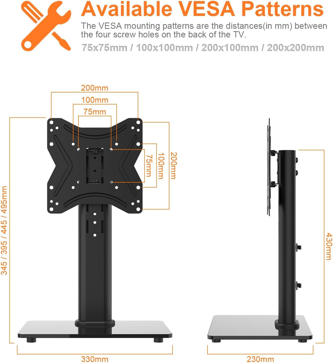WIDELY COMPATIBILITY: Our TV Stand fits for most 17 26 32 37 40 42 43 inch flat and curved TVs up to 30kg , VESA patterns: 100×100/200×100/200x200mm.