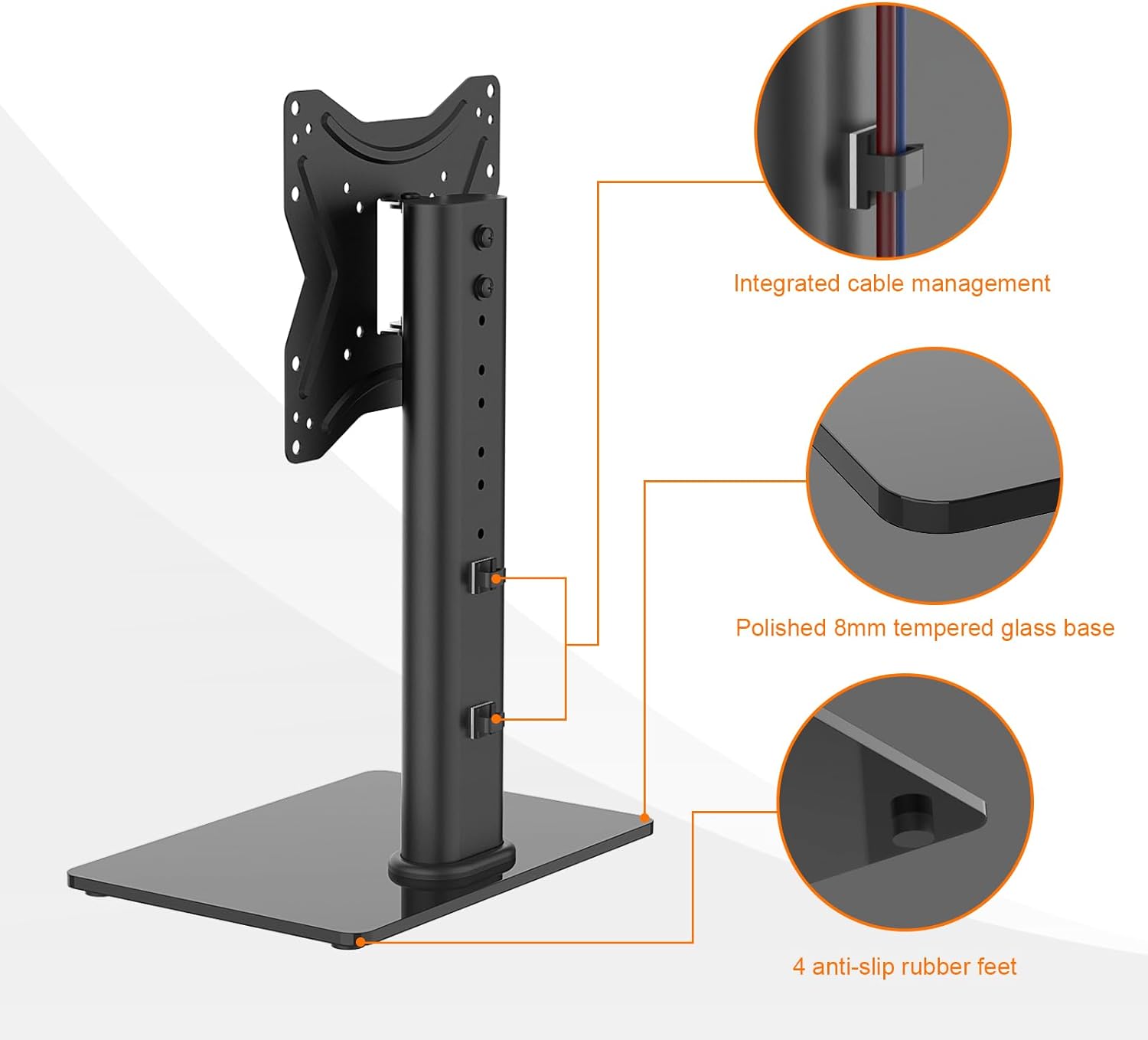 Be the first to review “GRIFEMA GB1005-2 Universal Table Top Pedestal TV Stand for 17″-43″ LCD LED TVs, Height Adjustable TV Base Stand with Tempered Glass Base, Cable Management, Holds 30 KG & Max. VESA 200x200mm”