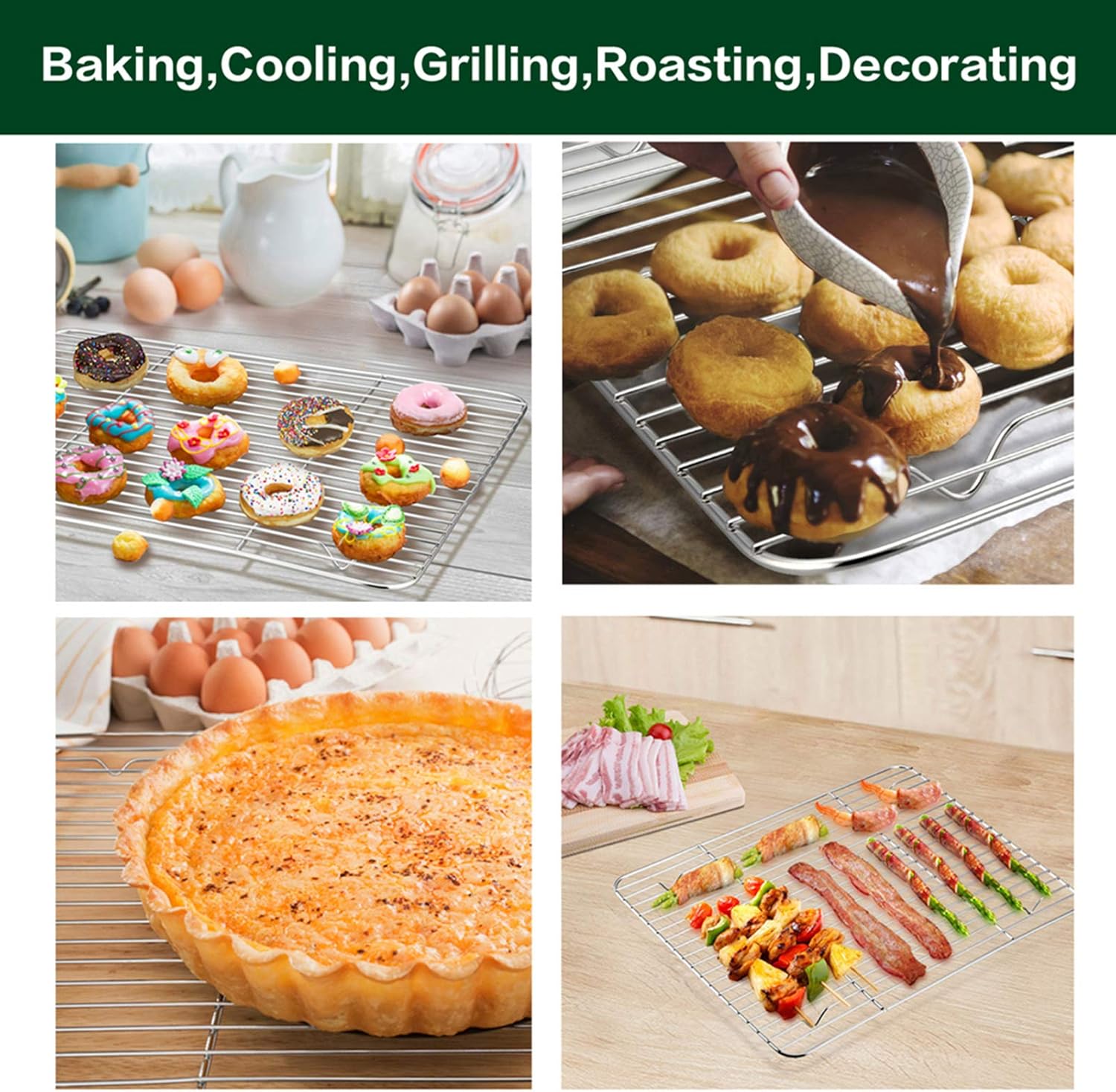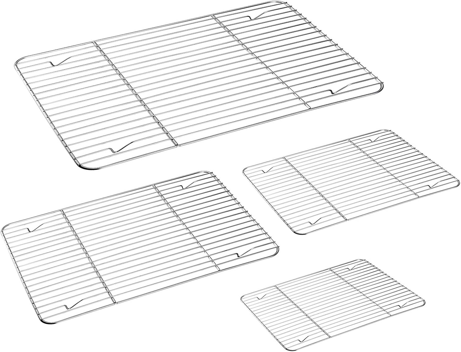 Grill Rack Set of 4, Stainless Steel Wire Rack for Roasting, Baking, Grilling, Cooling, Rust Free & Oven Safe, Various Size & Multi-Purpose, Dishwasher Safe