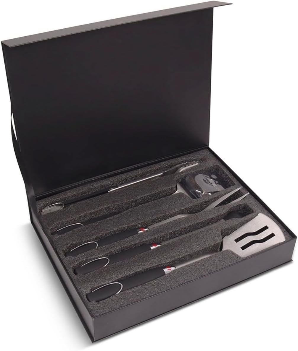 An excellent all rounder starter set, this is an ideal gift for any beginner or seasoned grillmaster. Including every tool they’ll need, they can safely and securly lift, move baste and clean with this complete kit. Made from Stainless Steel, Rubber, Brass and Silicone To clean, wash with Warm Soapy Water.