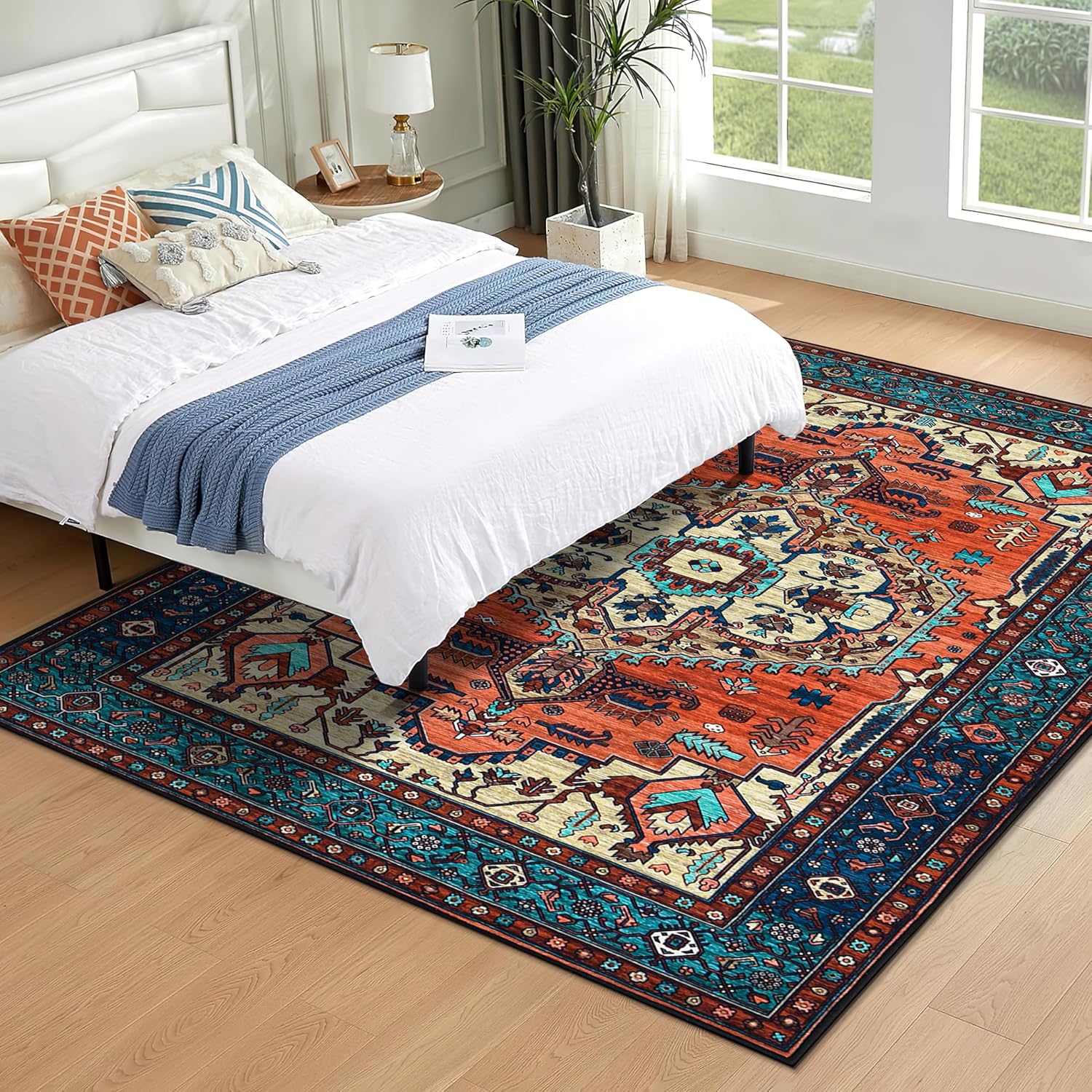 VINTAGE BOHO DESIGN: Vintage bohemian rugs will brings your room a unique Moroccan shabby chic style, enhance home decor. Rich terracotta and blue color presents beautiful and luxury appearance, a great decorative rug for any room in your home. It is also a wonderful holiday gift for your family and friends.