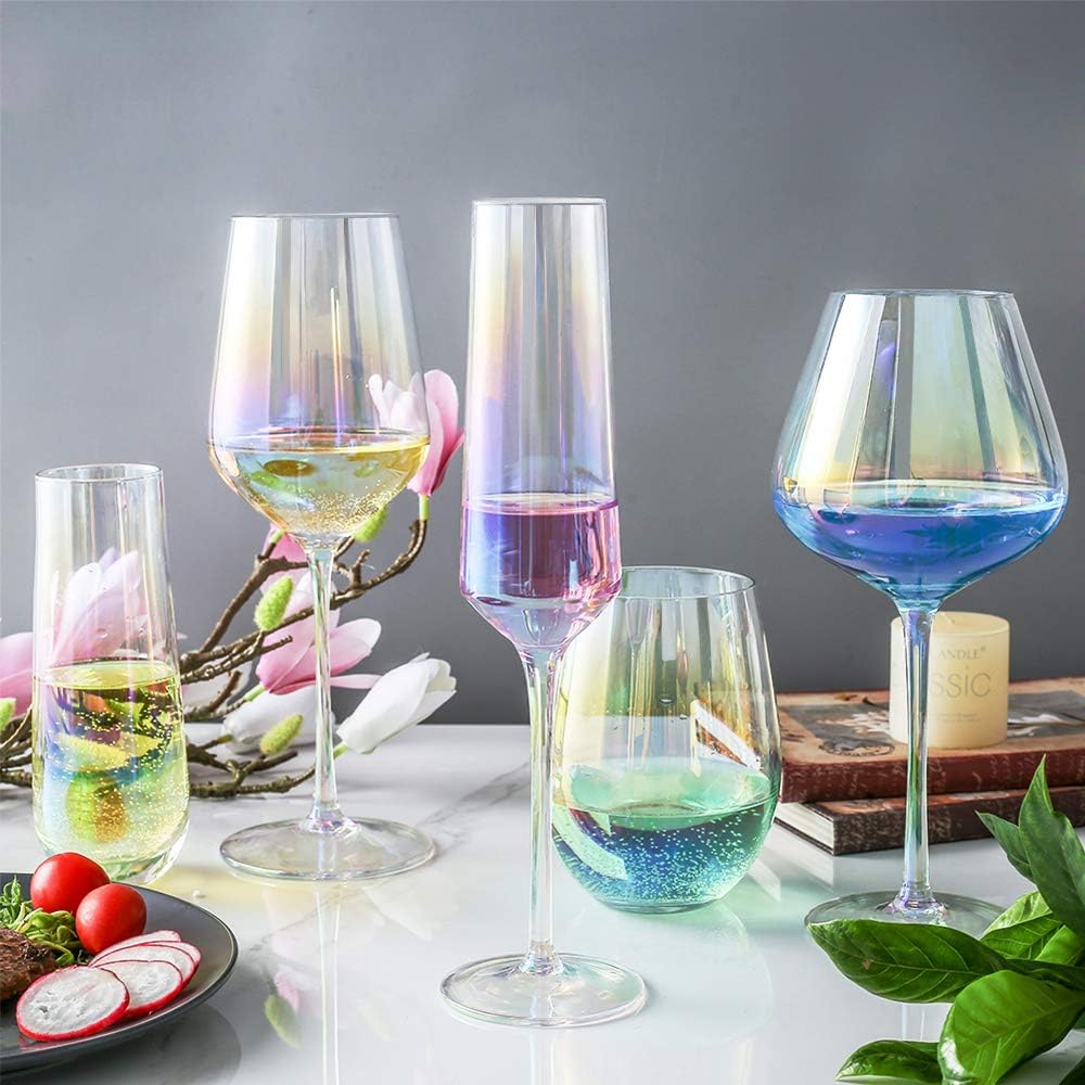 Experience the wine glasses preferred by high-quality star restaurants. The use of modern protection electroplating technology adds rainbow-like color of the outer layer of the wine glass, can bring extraordinary visual enjoyment in different situations.