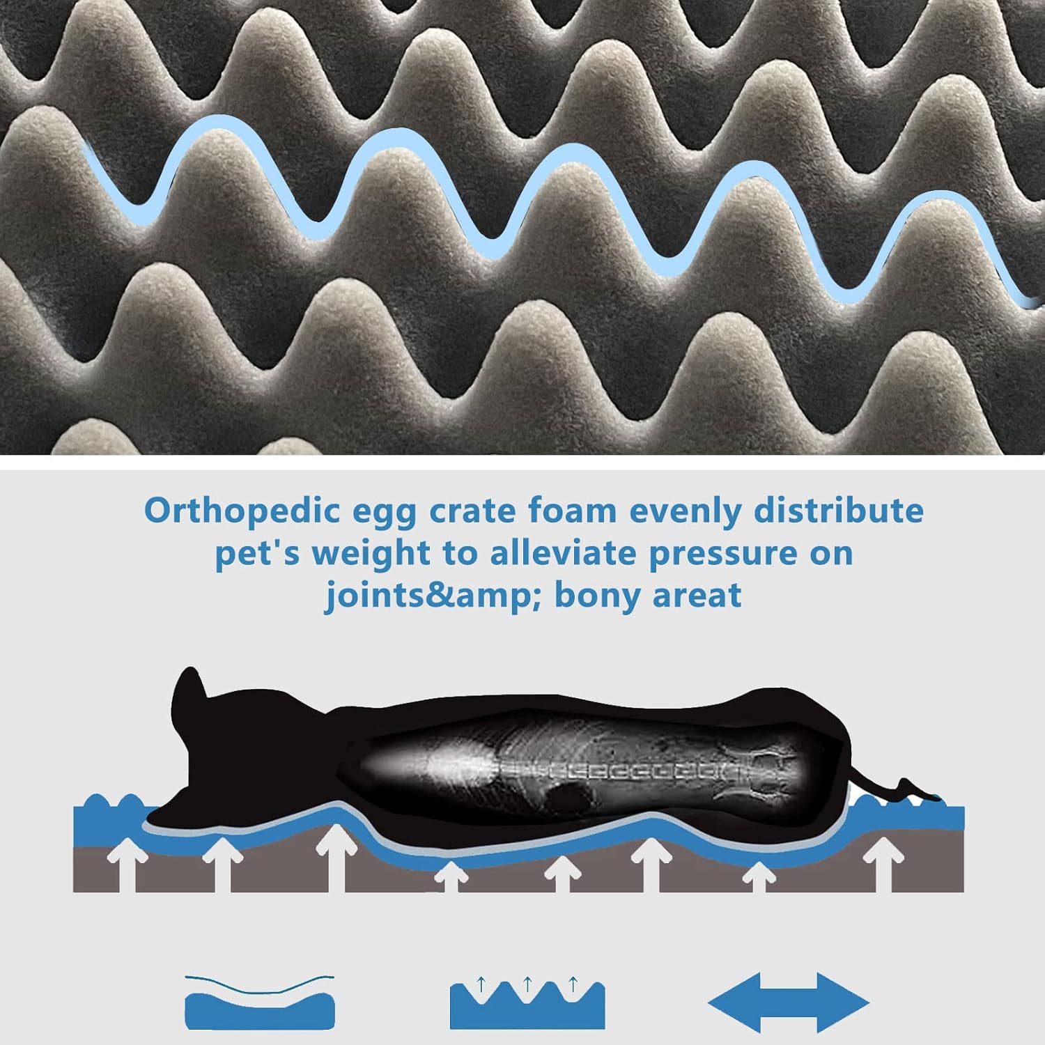 【CARE FOR DOG’S JOINTS】- The orthopedic dog bed is filled with a high-density 4-inch thick egg crate foam, which can relieve the pain by dispersing the weight of the pet. The foam dog bed is an ideal choice for pets to provide support for muscles and joints.