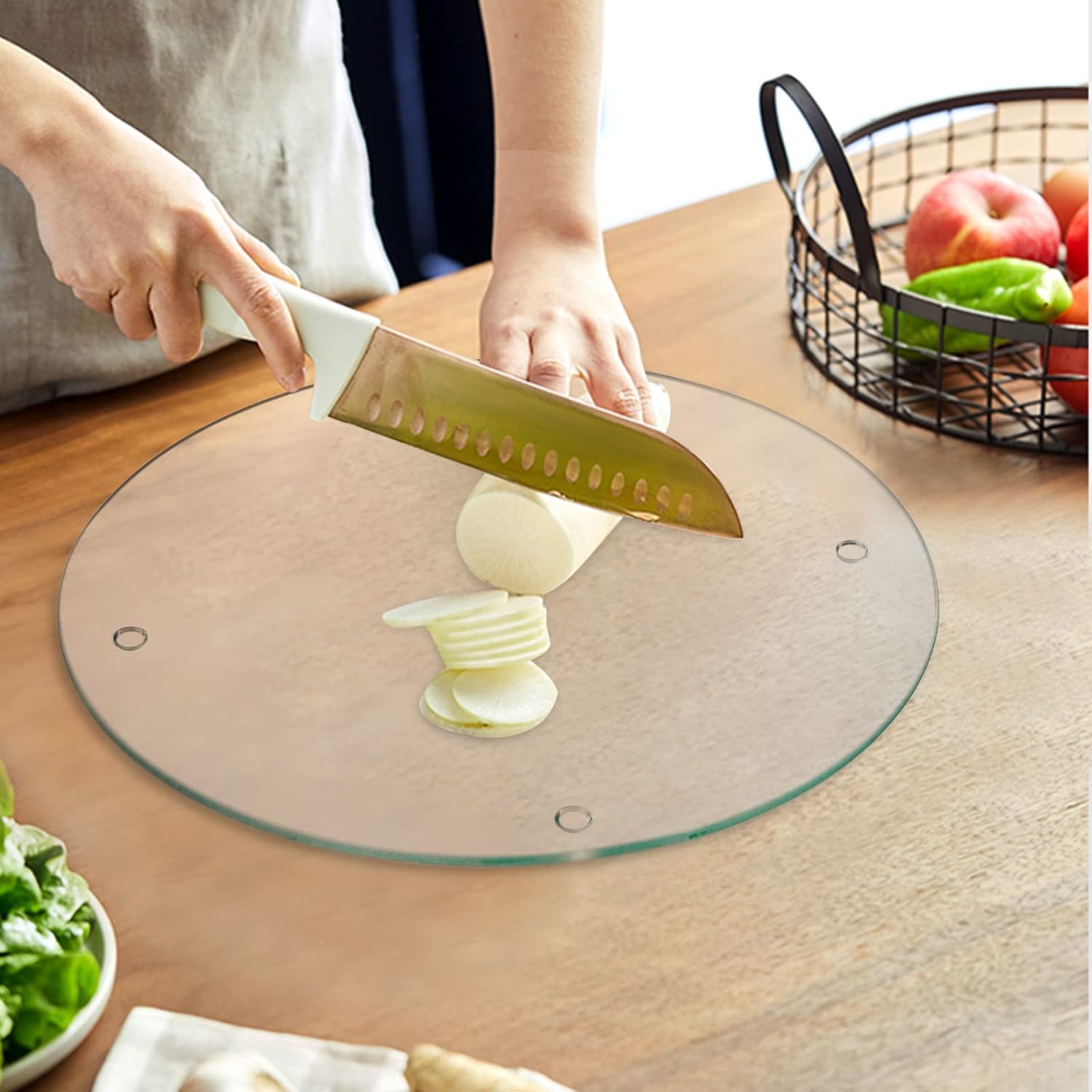 Easy to Use & Clean: Without sharp edges, the round glass cutting board is safe to use. Besides, it is easy to clean with dishwasher.
