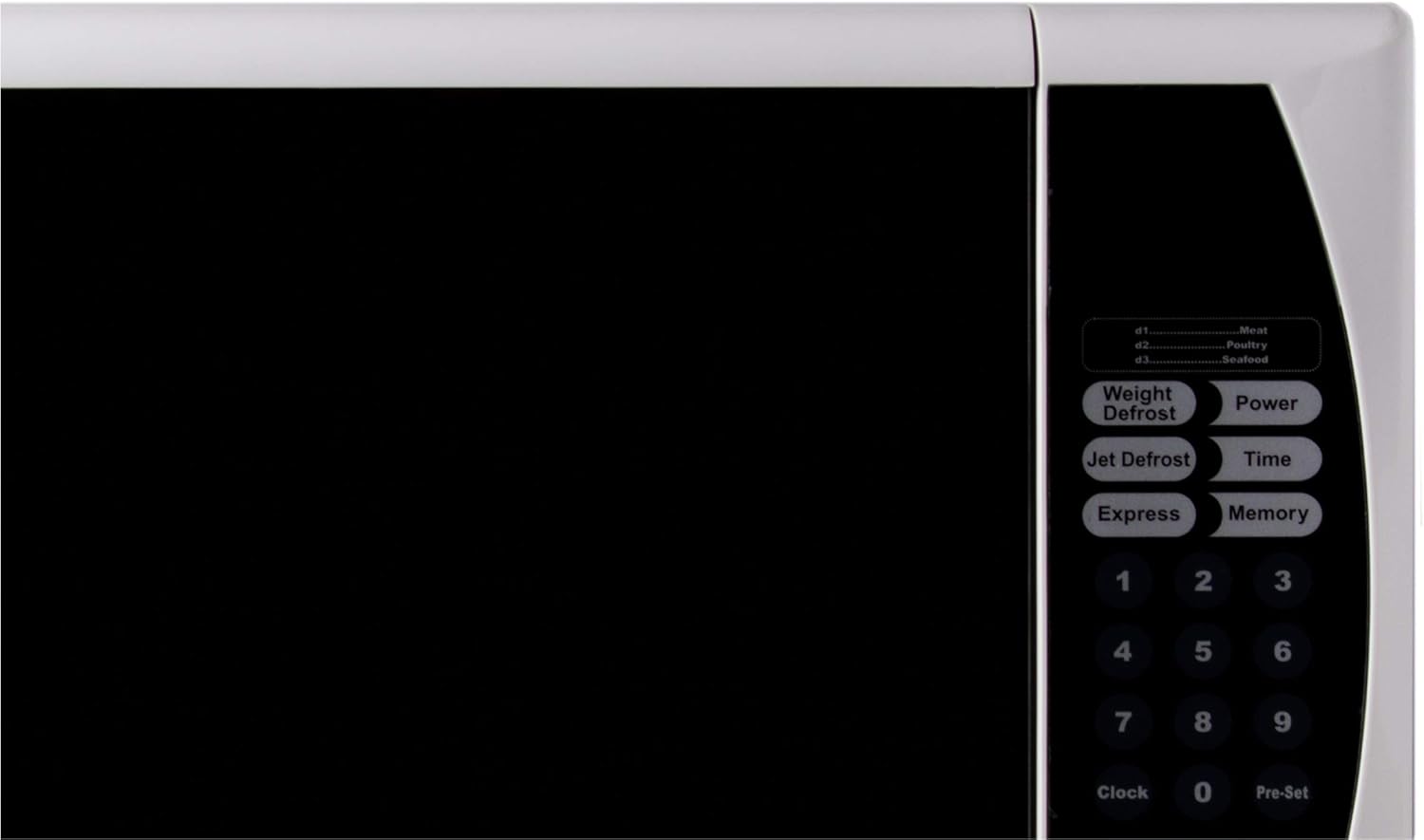 Elegant Design and Stability: A sleek white and silver microwave that not only looks good but stays put with sturdy, non-slip feet, making it one of the best microwaves on sale prime 800w.