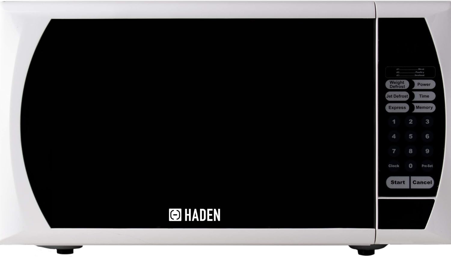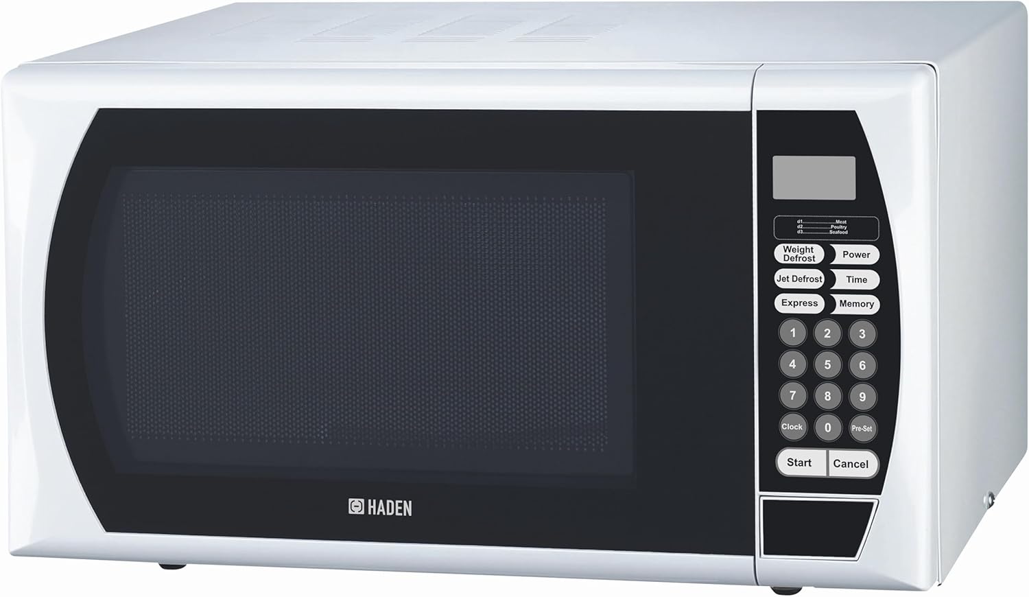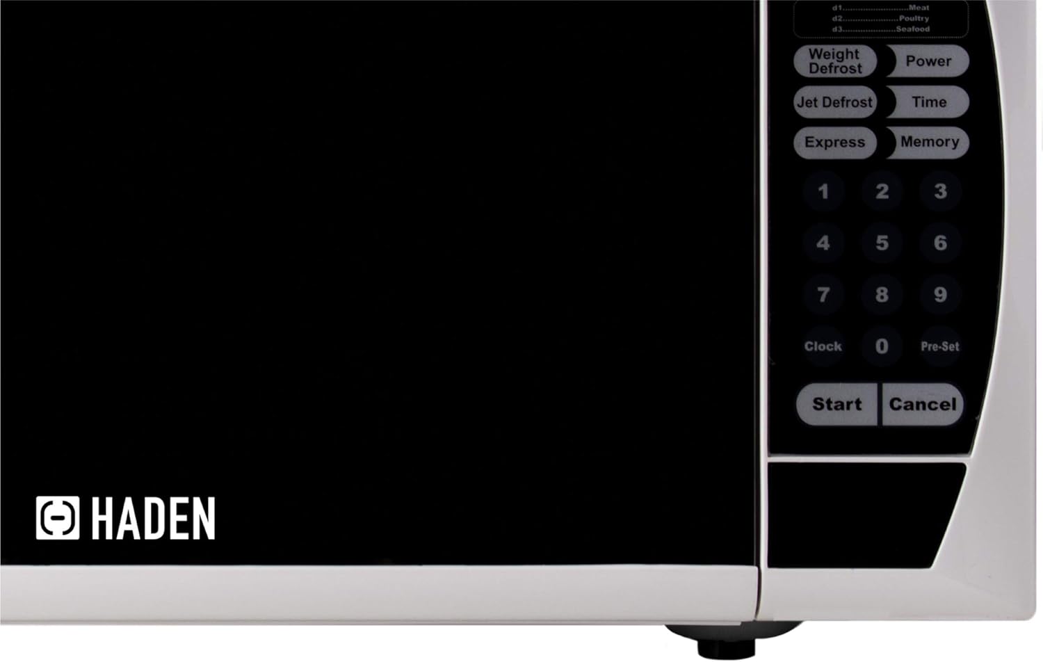 Haden 800W White Microwave Oven – Defrost & Express Functions – Stainless Steel Build – Digital Timer – 10 Power Levels – 20L Countertop Microwave – Mirror Door
