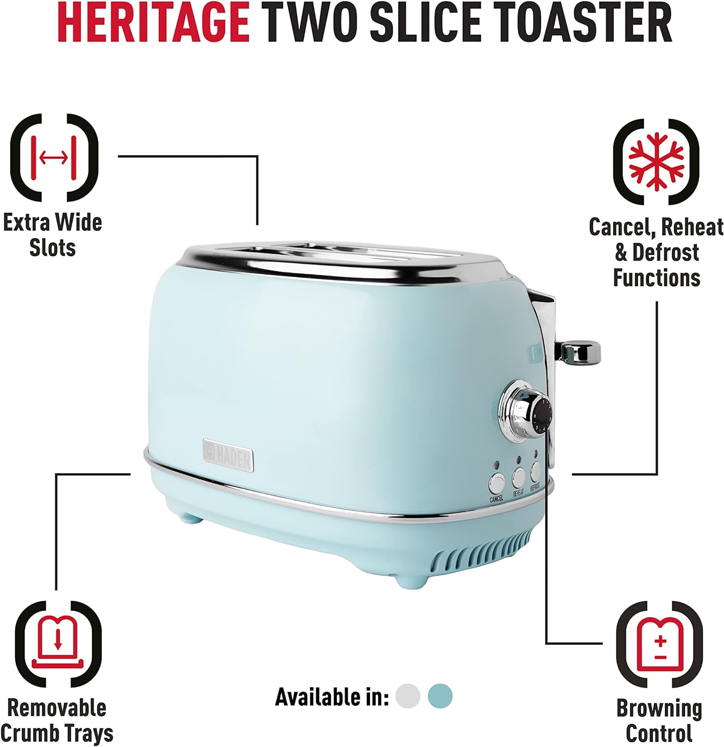 (as of [price_update_date] – DetailsHaden Heritage Toaster – Electric Stainless-Steel Toaster with Reheat and Defrost Functions – Two Slice, Turquoise