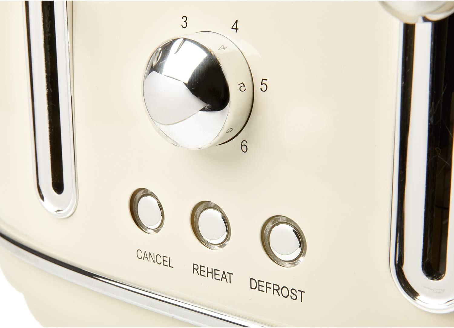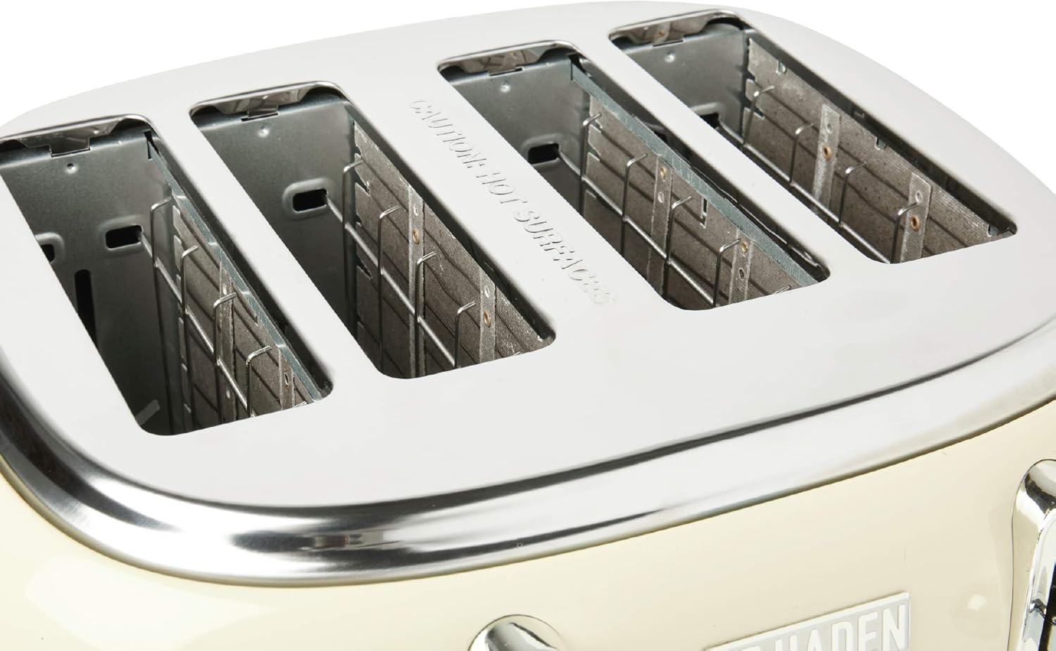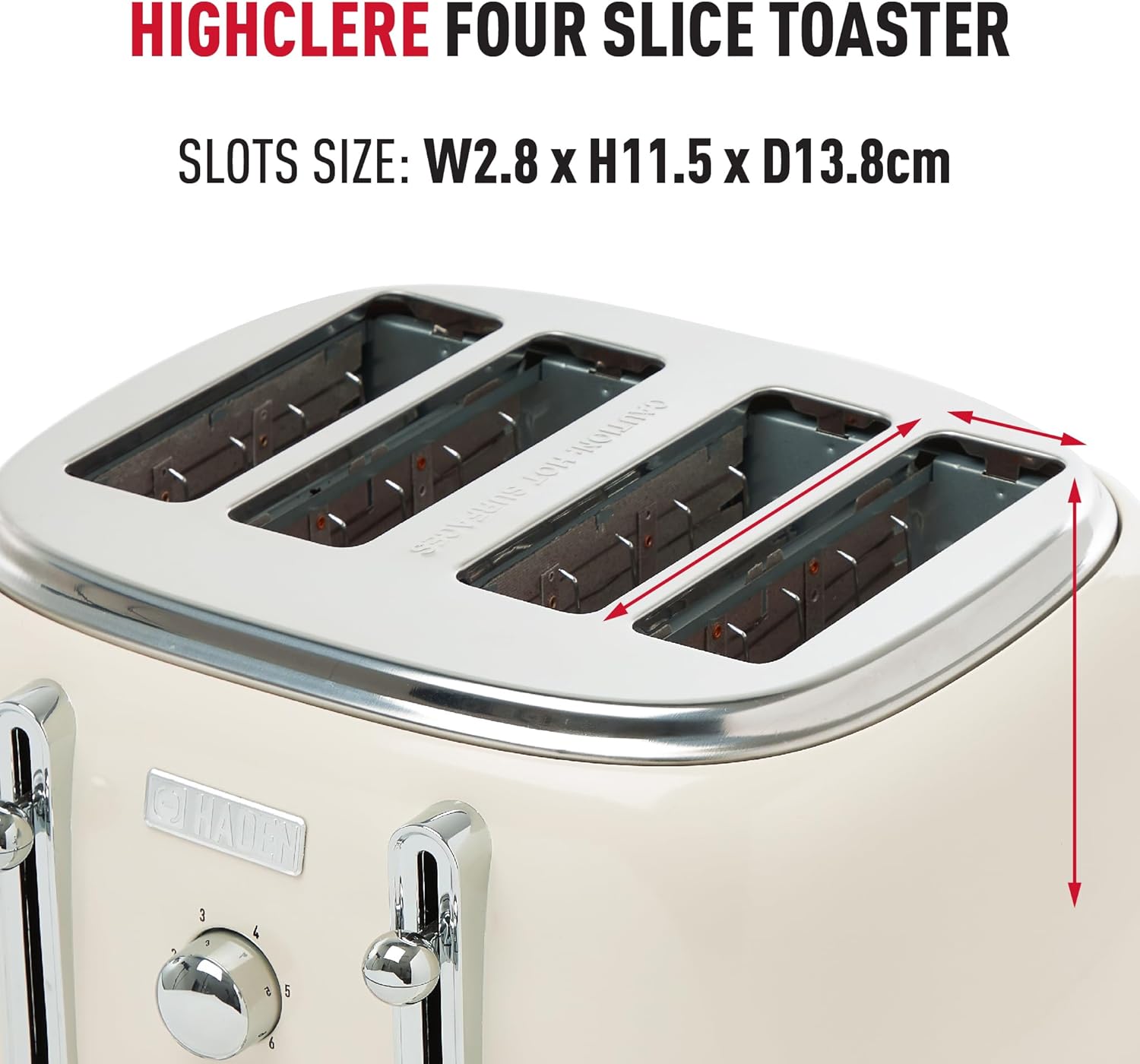 Retro and Elegant Design: The Haden Highclere 4 slice toaster boasts a cream retro design, blending style and functionality into your kitchen with its 4 slice cream colour option.