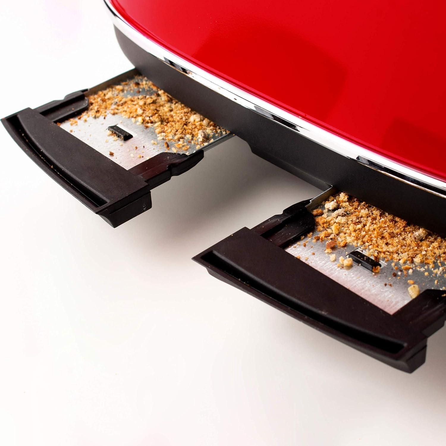Convenient and Safe: Designed with non-slip feet and easy-to-clean crumb trays, our red 4 slice toaster offers stability and ease, complementing the safety features of our red kettle and toaster sets.