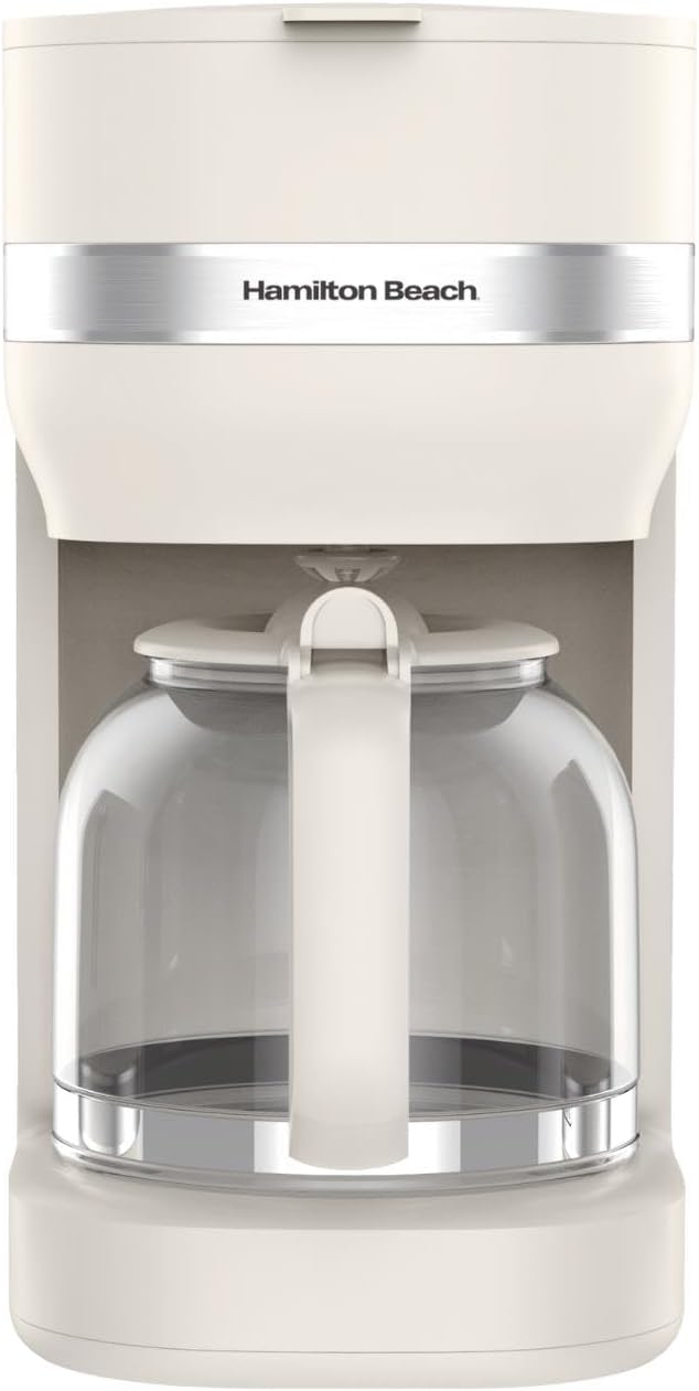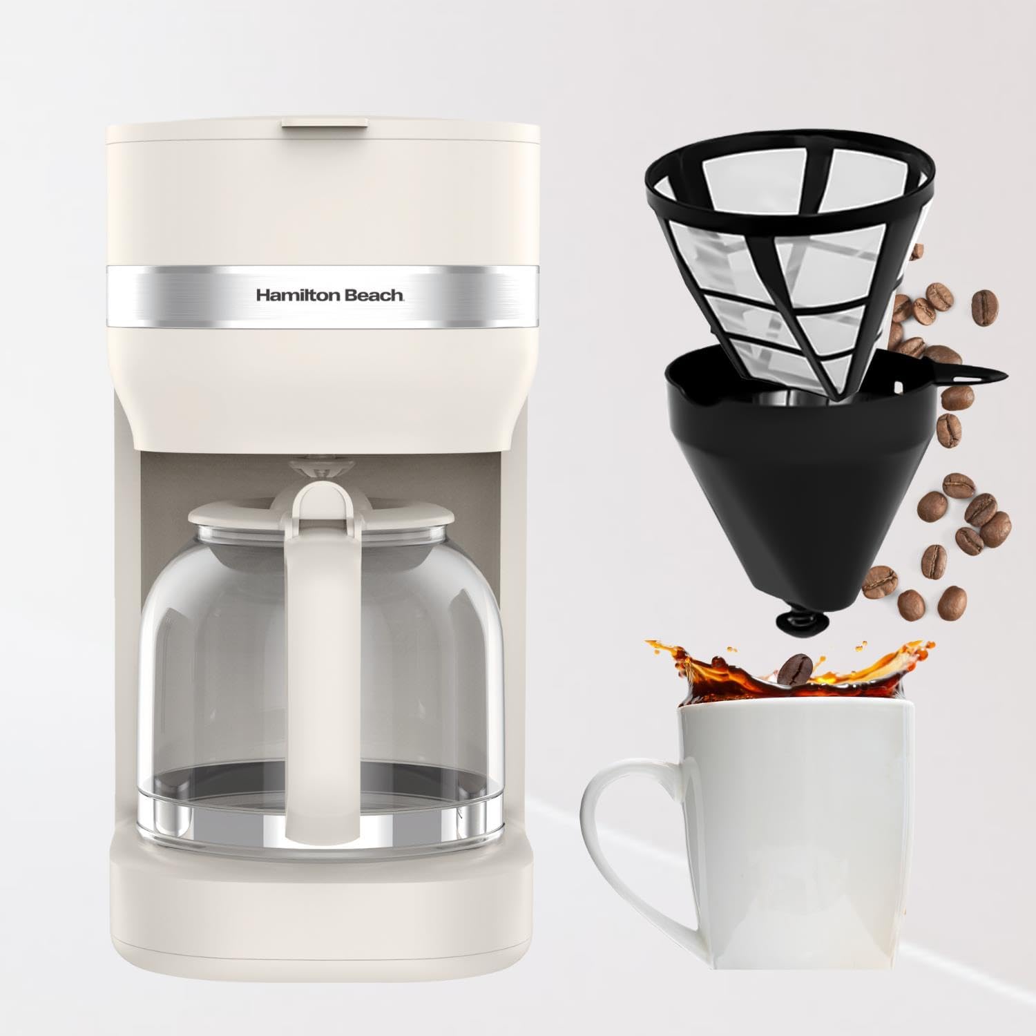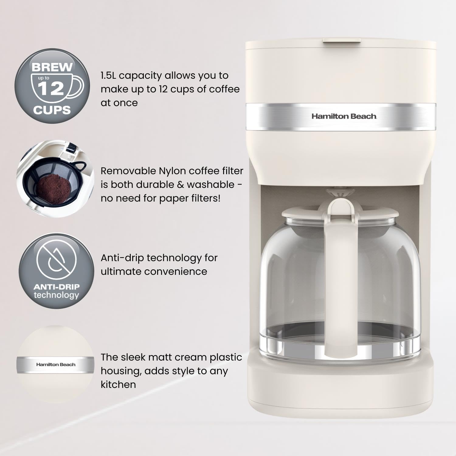 Hamilton Beach Ella Coffee Machine, 1.5L, Filter Coffee Maker, Makes 12 Cups, Removable Washable Filter, Anti-Drip, Water Level Window, 900W – HBC9453MB, Matte Cream