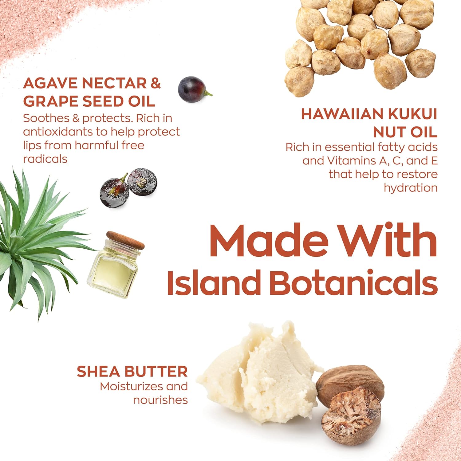 Hawaiian Kukui Nut Oil and shea butter moisturizes and rejuvenates dry lips, while agave and grapeseed oil provides high levels of anti-oxidants to help soothe and protect lips from harmful radicals