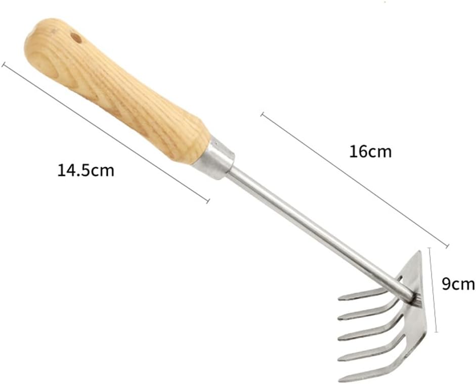 Hand Garden Rake with 5 Steel Tines,Hand Cultivator Rake with Ergonomic Wooden Handle,Hand Tiller Garden Tool for Weeding and Loosens Soil