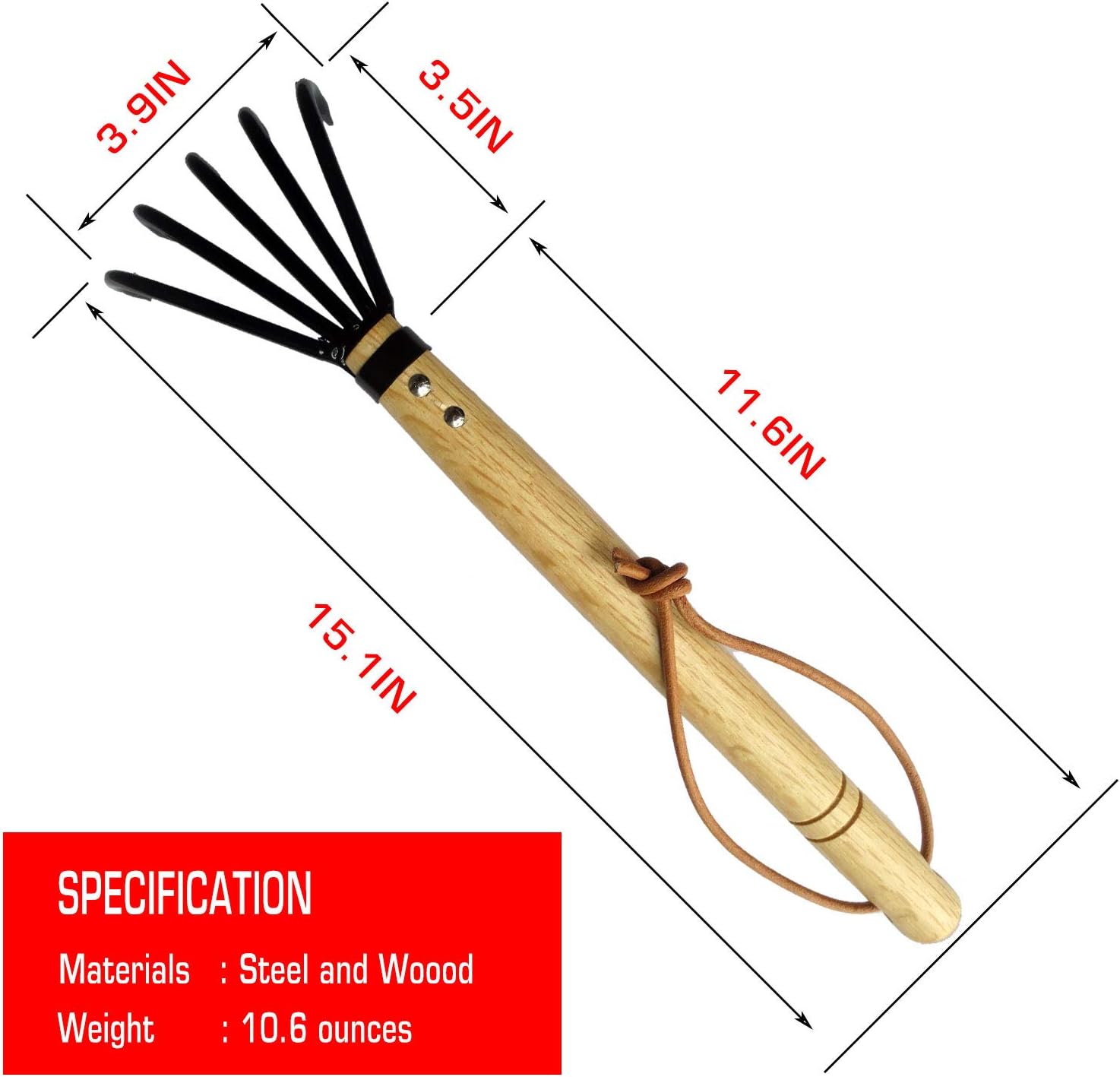 【Superb 5 Tines Claw Rake With its 5 tines】this hand cultivator will perfectly break and loosen the soil into smaller pieces to allow air and water to penetrate deeply into the soil and drain more effectively. Small garden rakes are very useful for your backyard garden because it has many functions all at one.