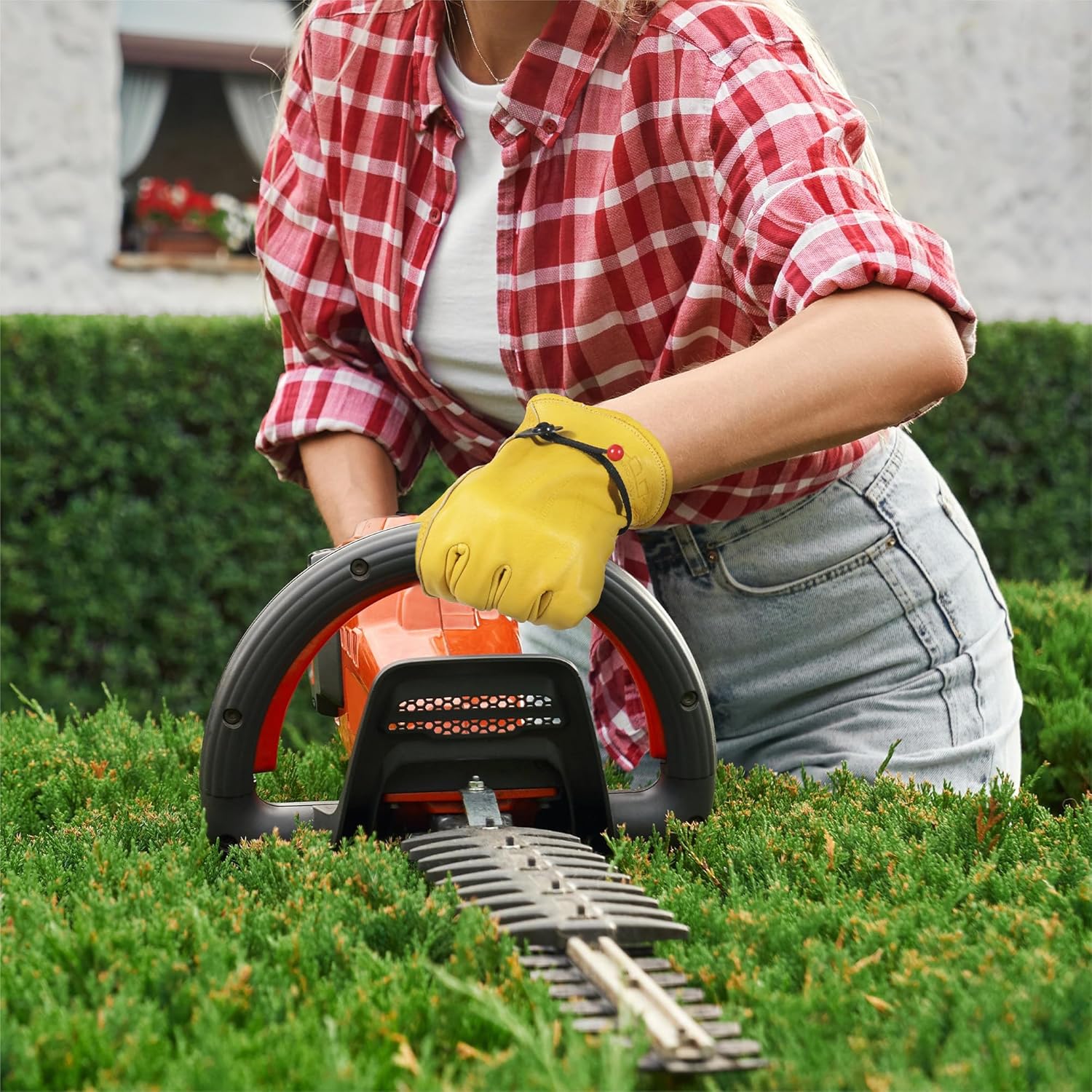 [Leather Gardening Gloves] Made from carefully selected high-quality full-grain cowhide leather which is durable, soft and flexible. The cowhide is not only wear-resistant but also thorn-proof as well. Keep your hands safe in the work.
