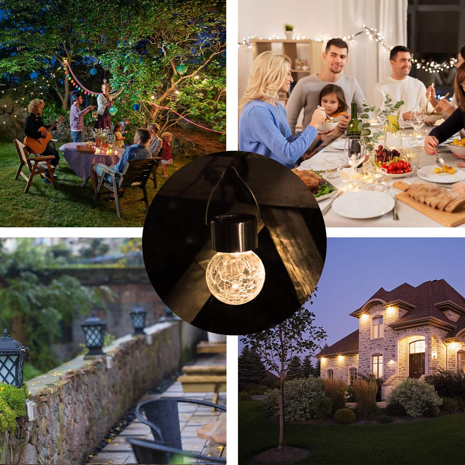 Hanging Solar Ball Lights, 4 Pack Upgrade Cracked Glass Hanging Ball Lights, Last Longer, Waterproof Outdoor Lanterns Decorative Globe Lights Solar Lighting for Garden,Party,Yard,Tree or Lawn