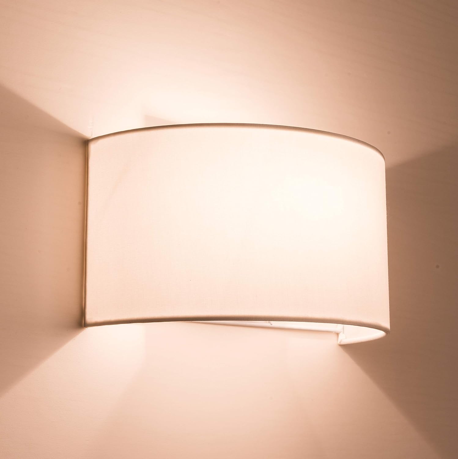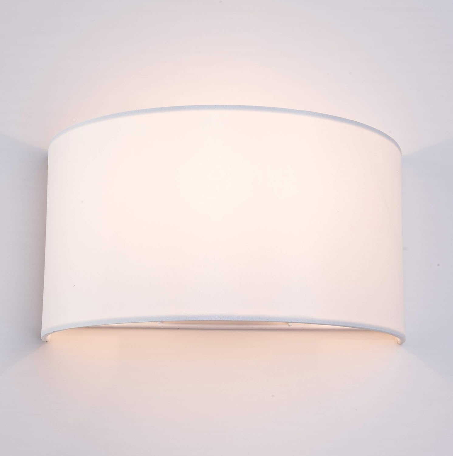 HARPER LIVING Wall Light with Switch, E27 ES Wall Wash Reading Lamp with White Semi-Circle Fabric Shade, Bedside Wall Sconce for Bedroom, Living Room, Hallway, Hotel