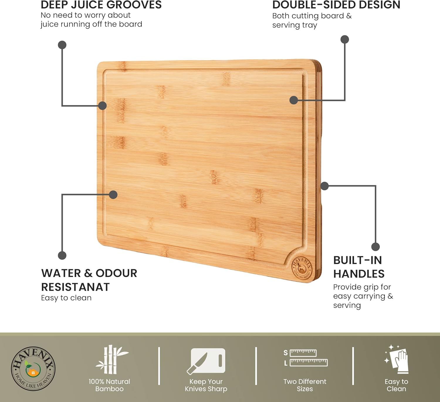 HAVENIX Bamboo Chopping Boards are an excellent addition to any kitchen. They offer versatile uses, whether you want to entertain your friends or just make your dining table a bit more special.