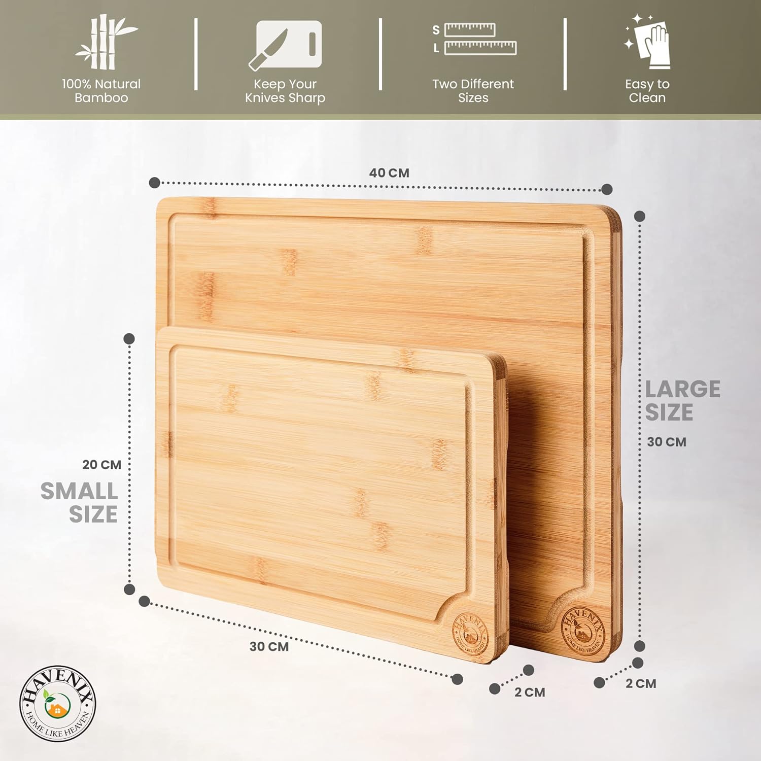 HAVENIX Bamboo Chopping Boards for Kitchens come in 2 optimal size Boards –