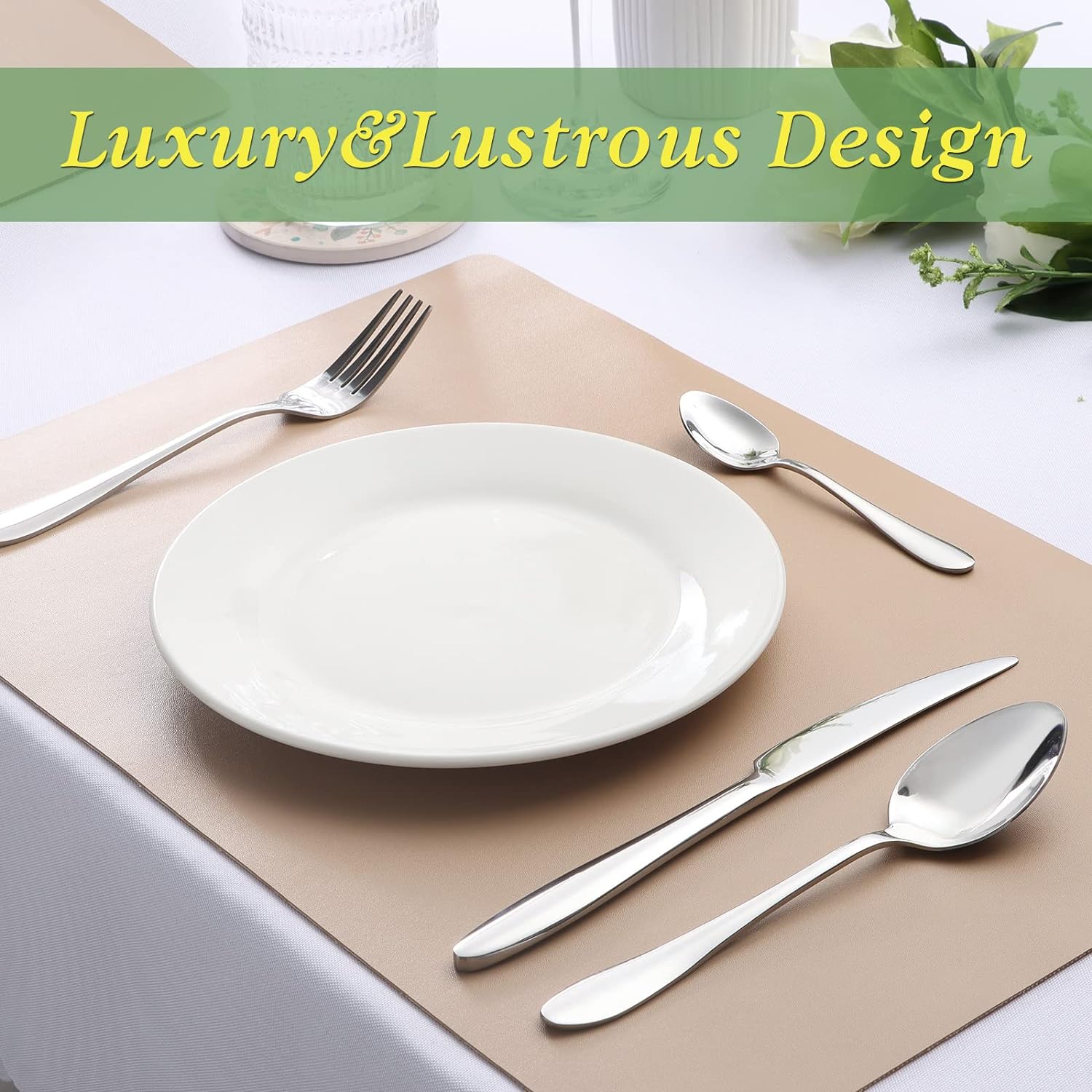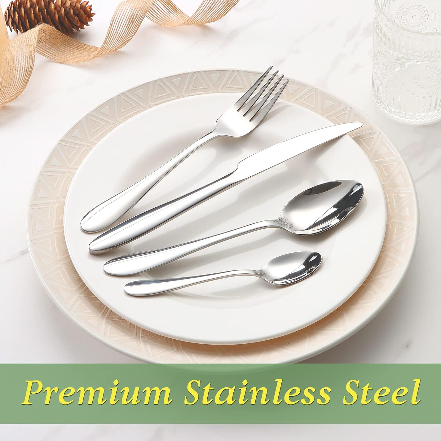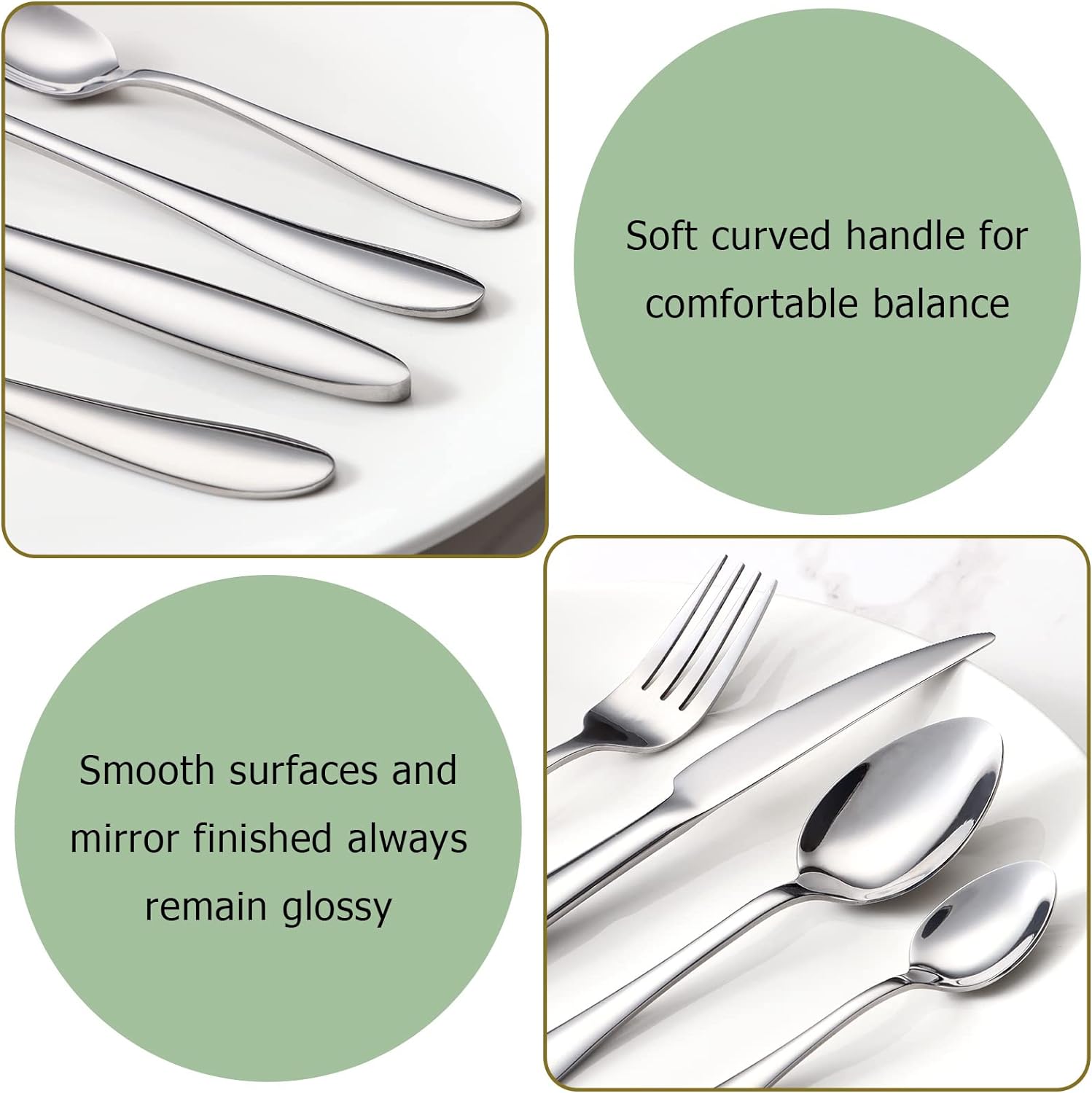 HIGH-QUALITY& DURABLE: Made of food grade 100% stainless steel which is healthy for daily use, Premium material makes the tableware not easy to rust and bend, Durable and will last a long time unlike those cheaply-made cutlery