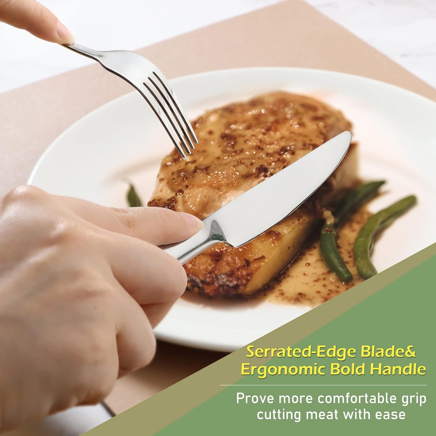 DISHWASHER SAFE & EASY GRIP: Smooth surface and mirror polish makes these cutlery sets keep shining, Cleaning is a breeze and dishwasher safe for your convenience, Great weight, not too heavy and absolutely not flimsy to provide a good grip