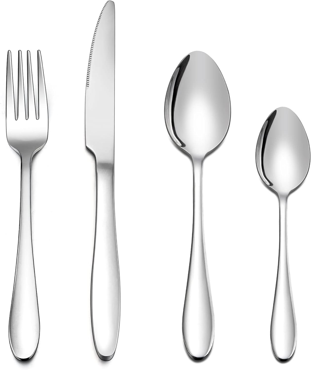 HaWare 16-Piece Stainless Steel Silverware Flatware Set, consisting 4 of each of dinner knife, dinner fork, dinner spoon and teaspoon, is constructed by 18/0 stainless steel to ensure health and durability. High hardness, not blend or break easily. Simple design is timeless and elegant. Smooth edge and proper weight is comfortable to hold for adults and big children. Easy clean and dishwasher safe. Perfect for formal and casual occasions, hotel, restaurant. Ideal for daily use, family gathering, entertaining, buffet, party.