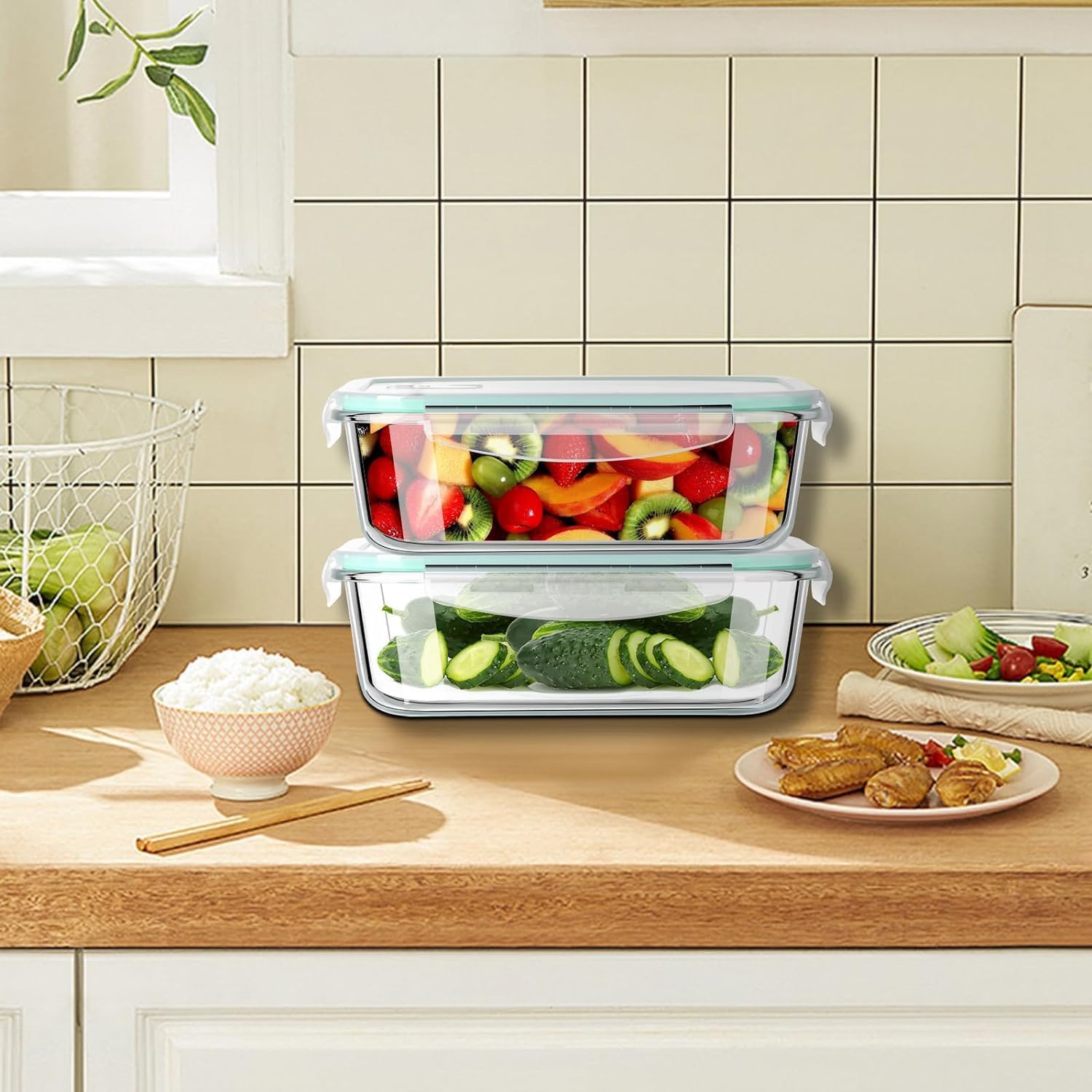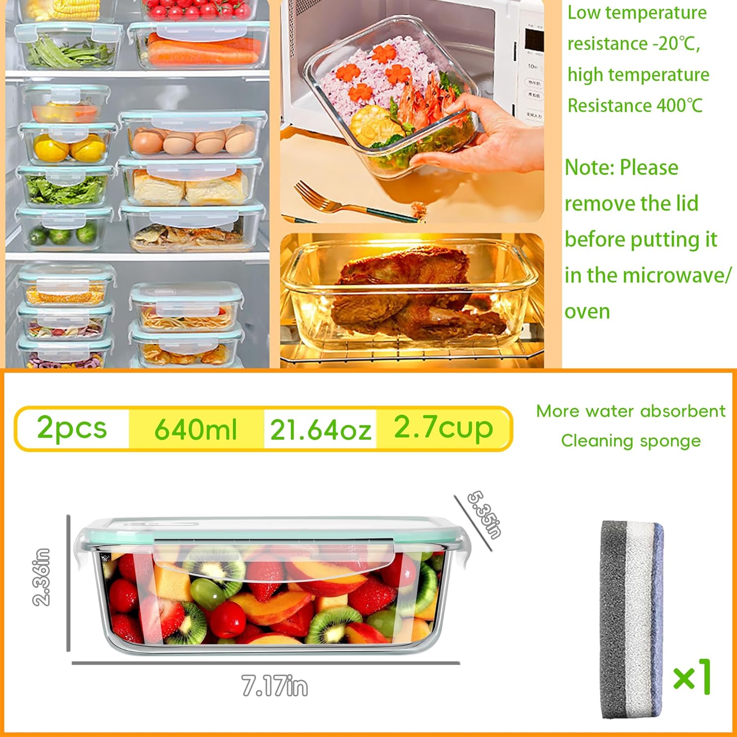 Glass Food Storage Containers: Easy to clean, dishwasher safe Comes with magic sponge for easy maintenance. Durable construction ensures there is no deformation during washing.meal prep container Made of high quality recyclable material. Reduce the use of disposable containers and plastic waste. A sustainable choice for environmentally conscious people.