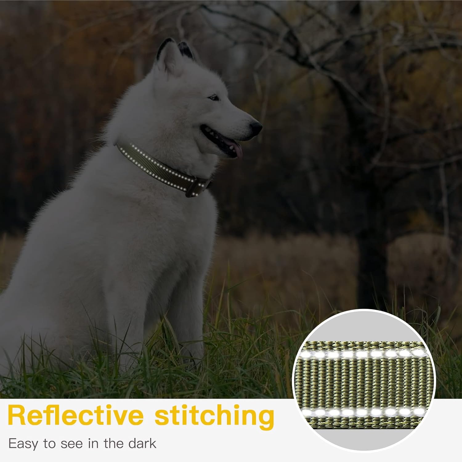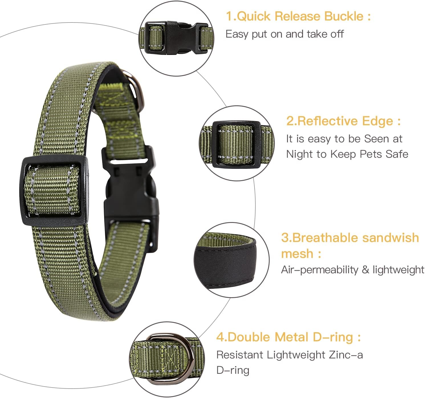 HEELE Dog Collar, Reflective Dog Collar, Soft Neoprene Padded Breathable Nylon Pet Collar Adjustable for Medium Dogs, Army-Green, M(34-52cm)