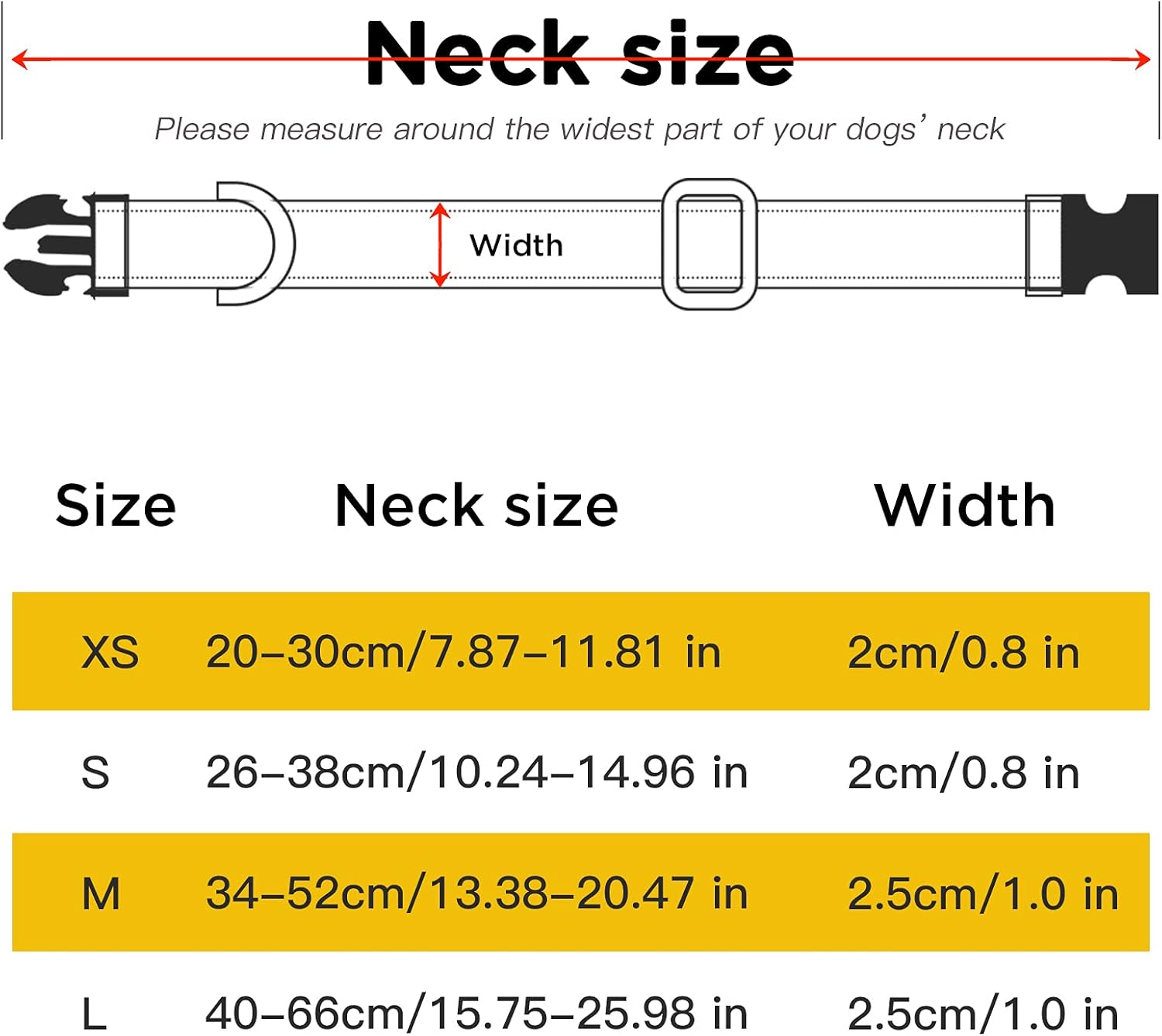 SIZES: XS – width 2cm, neck size 20-30cm; S – width 2cm, neck size 26-38cm; M – width 2.5cm, neck size 34-52cm; L – width 2.5cm, neck size 40-66cm; Your satisfaction is our first priority, if you encounter any problems during use, please contact us, we will reply to you as soon as possible.