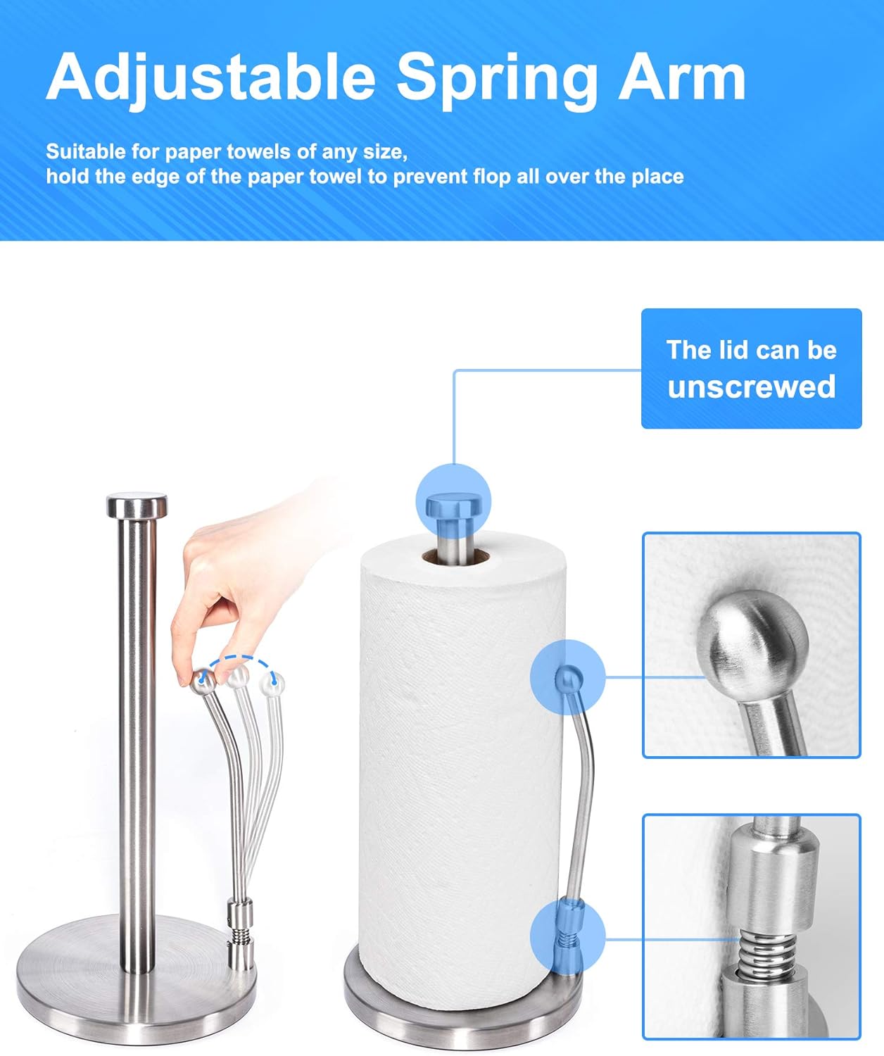 It can effectively prevent the paper towel from detaching from the top.Please screw down the top when you need to replace the paper towel. Spring Arm