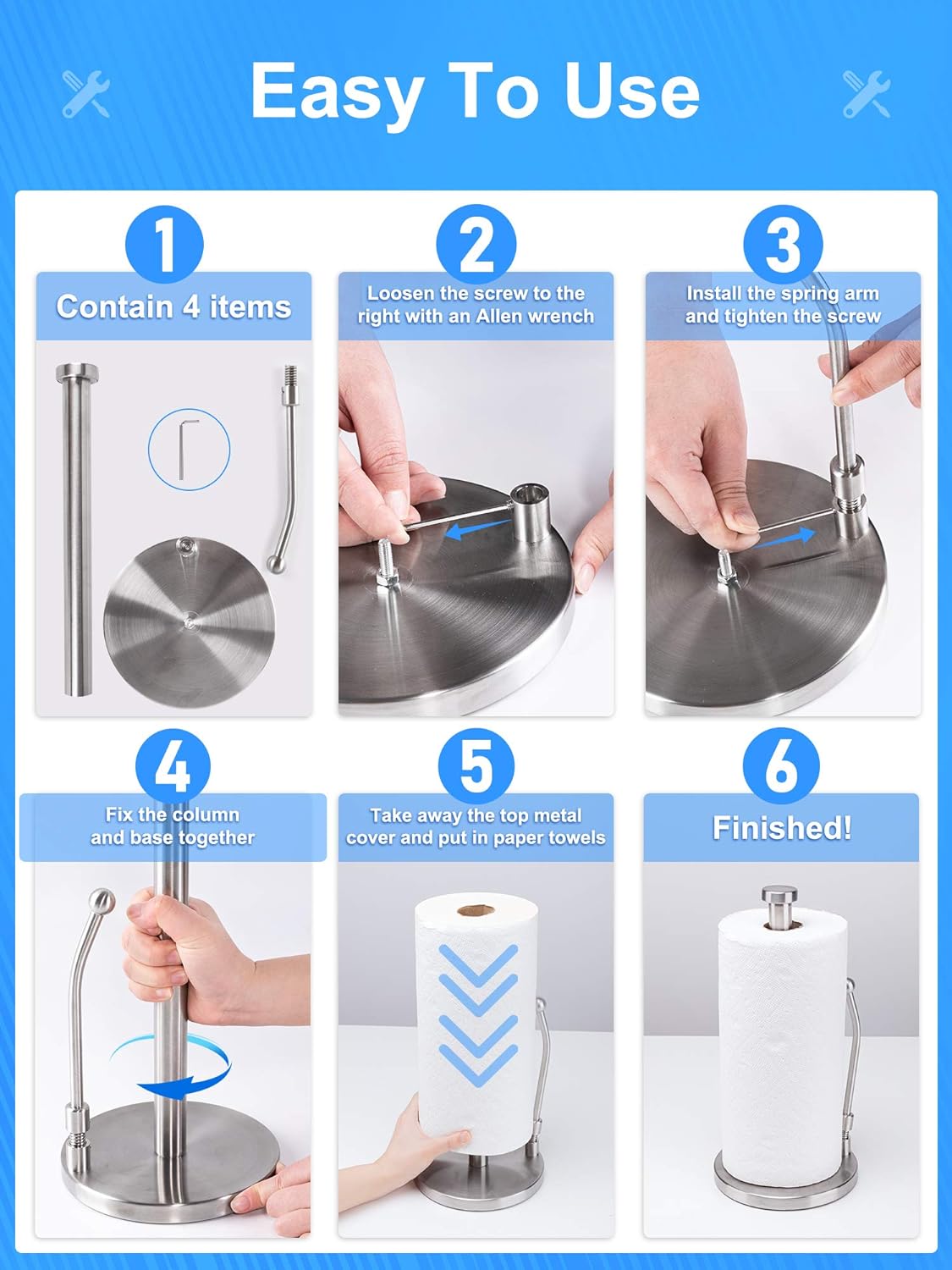 [Easy to Operate] You just assemble it with three steps, not only do you get a beautiful kitchen paper holder, you also have a sense of achievement.