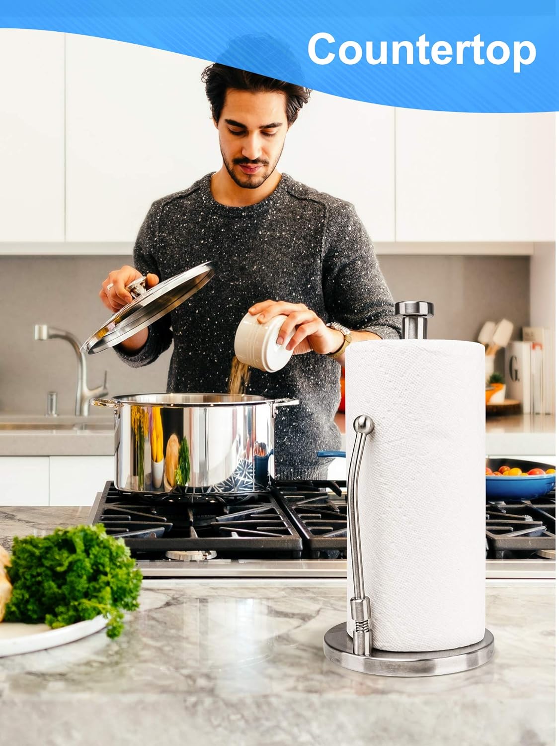 HEETA Upgraded Kitchen Roll Holder with Tension Arm [Delicate& Practical] Stainless Steel Paper Towel Holder Organizer Roll Dispenser for Kitchen Countertop Home Dining Table(Silver)