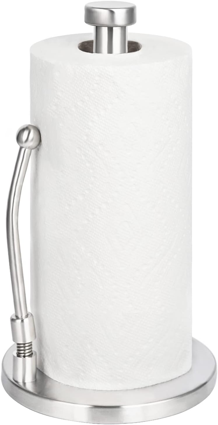 [New silicone pad] Add non-slip silicone pads on the bottom to stay the paper towel holder in place when you are tearing paper sheets. It also prevents the mental scratching of your countertop or table.