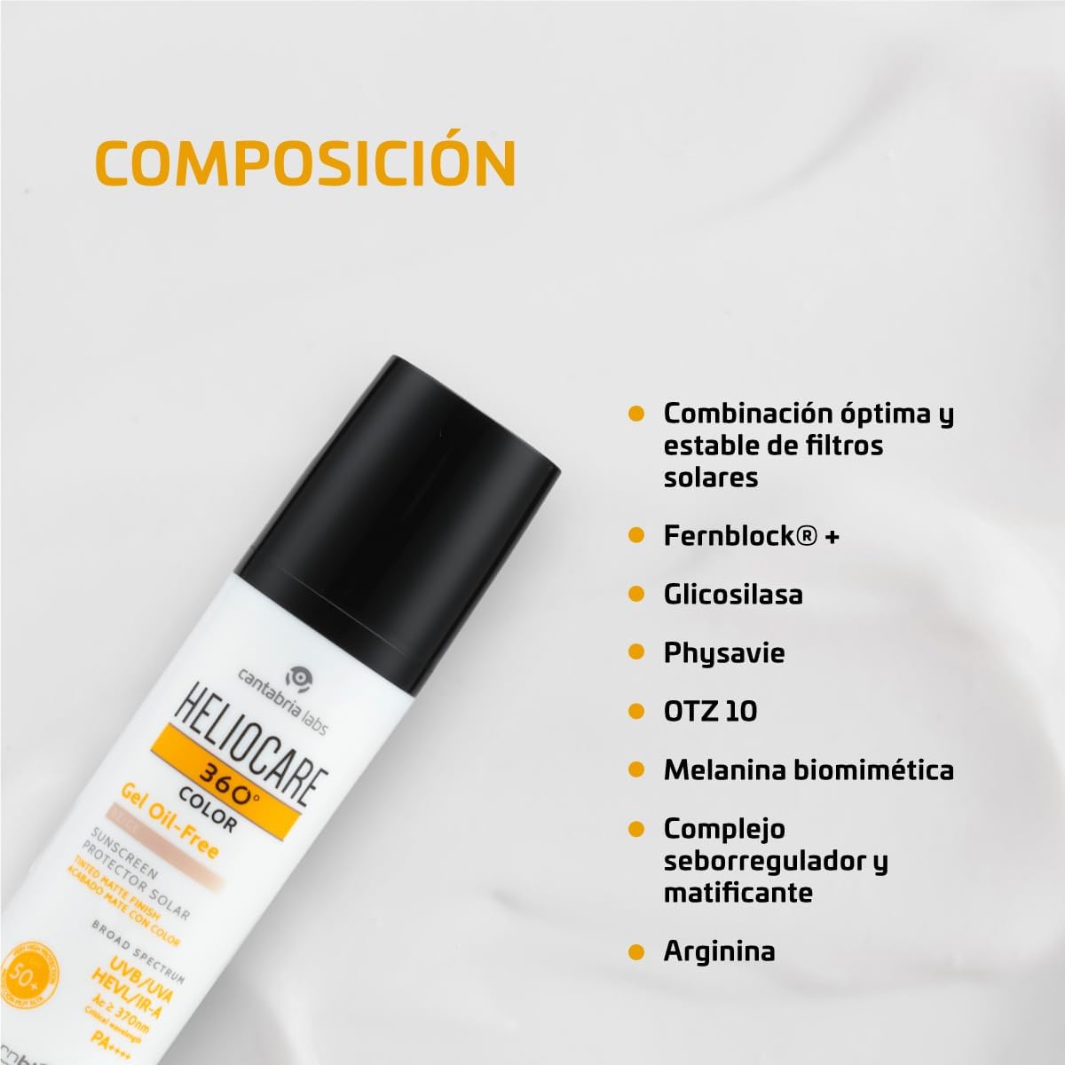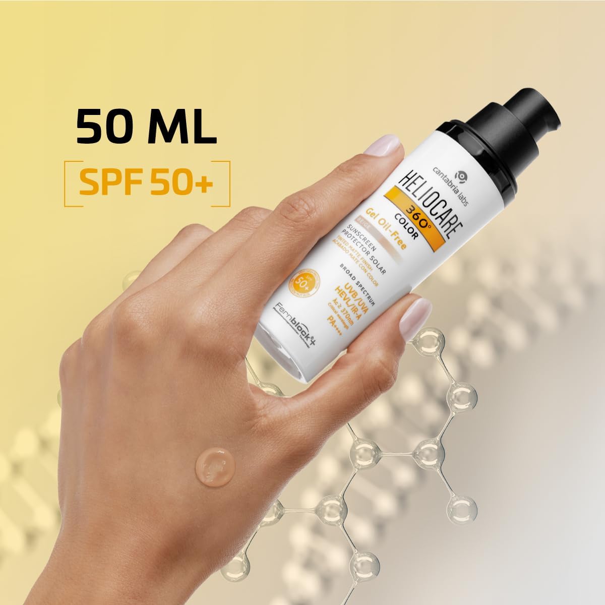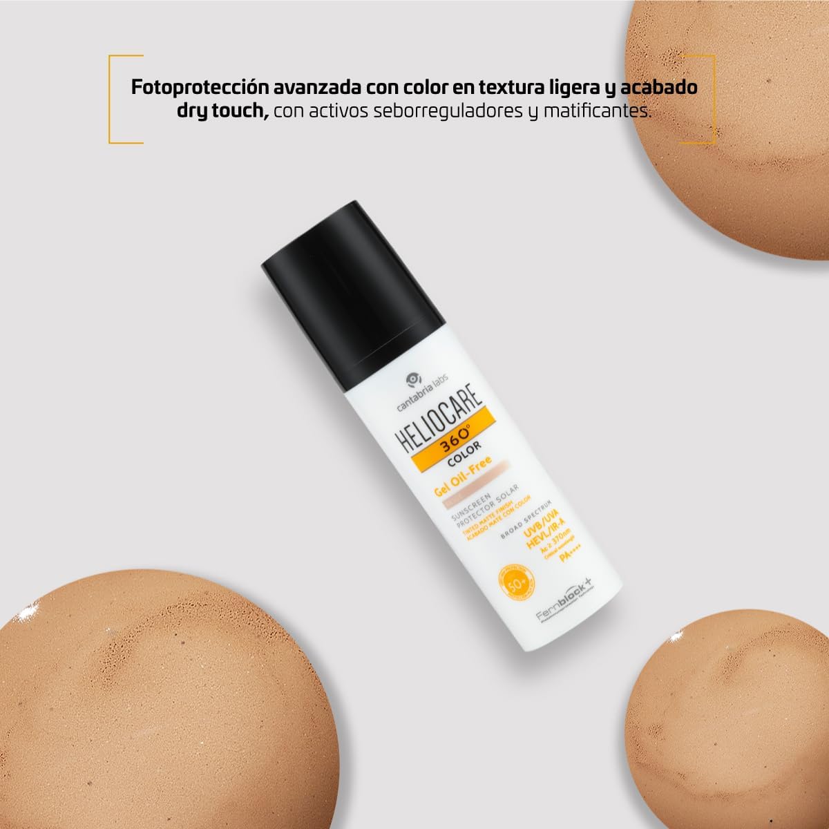 Heliocare 360 Color Gel Oil-Free Beige SPF 50 50ml / Gel Sunscreen For Face/Daily UVA UVB Visible Light Infrared-A Anti-Ageing Sun Protection/Matte Foundation Coverage