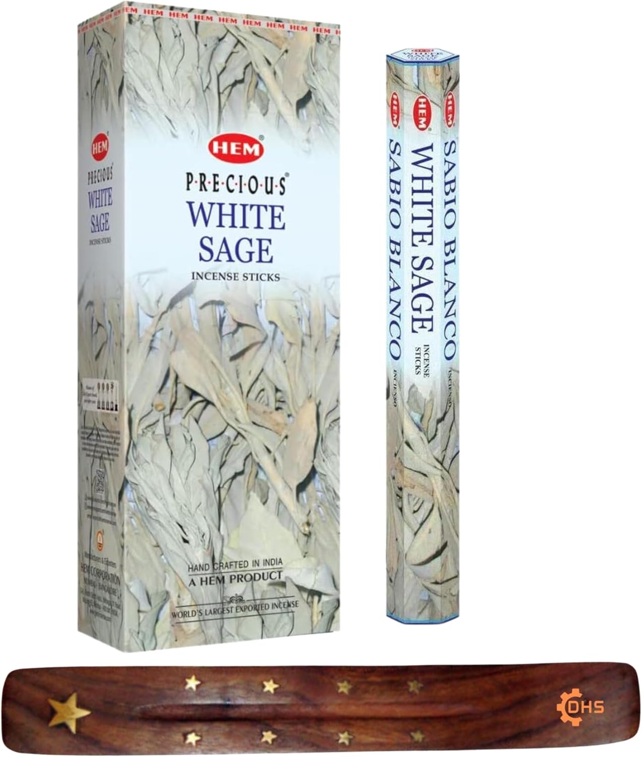 HEM Incense sticks WHITE SAGE Pack of 6 with DHS incense stick holder for Aromatherapy, Incense Spa, Yoga, Meditation, Healing, Spirituality and Relaxation…