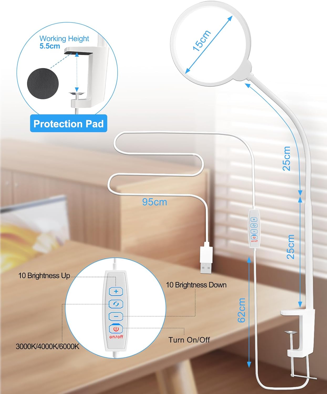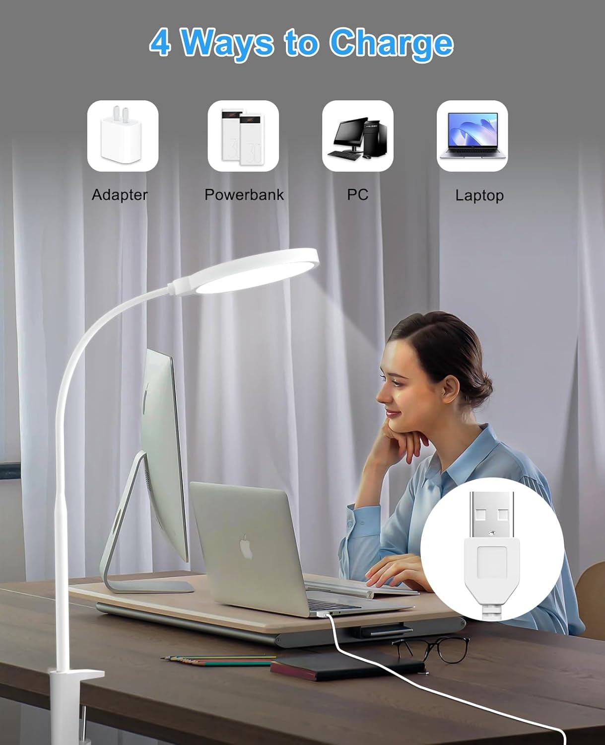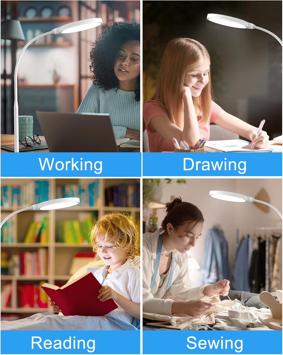 【360°Flexible Reading Lamp】The angle of the gooseneck desk lamps can be adjusted according to your needs and it has excellent anti-deformation function. You can easily change the work light direction to wherever you need it the most. Perfect for reading, working, studying, drawing, fixing, handicrafts, sewing and so forth.