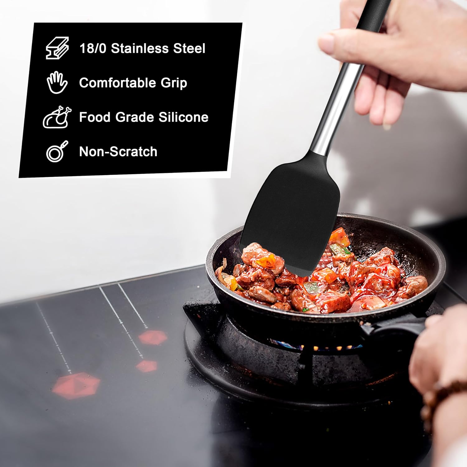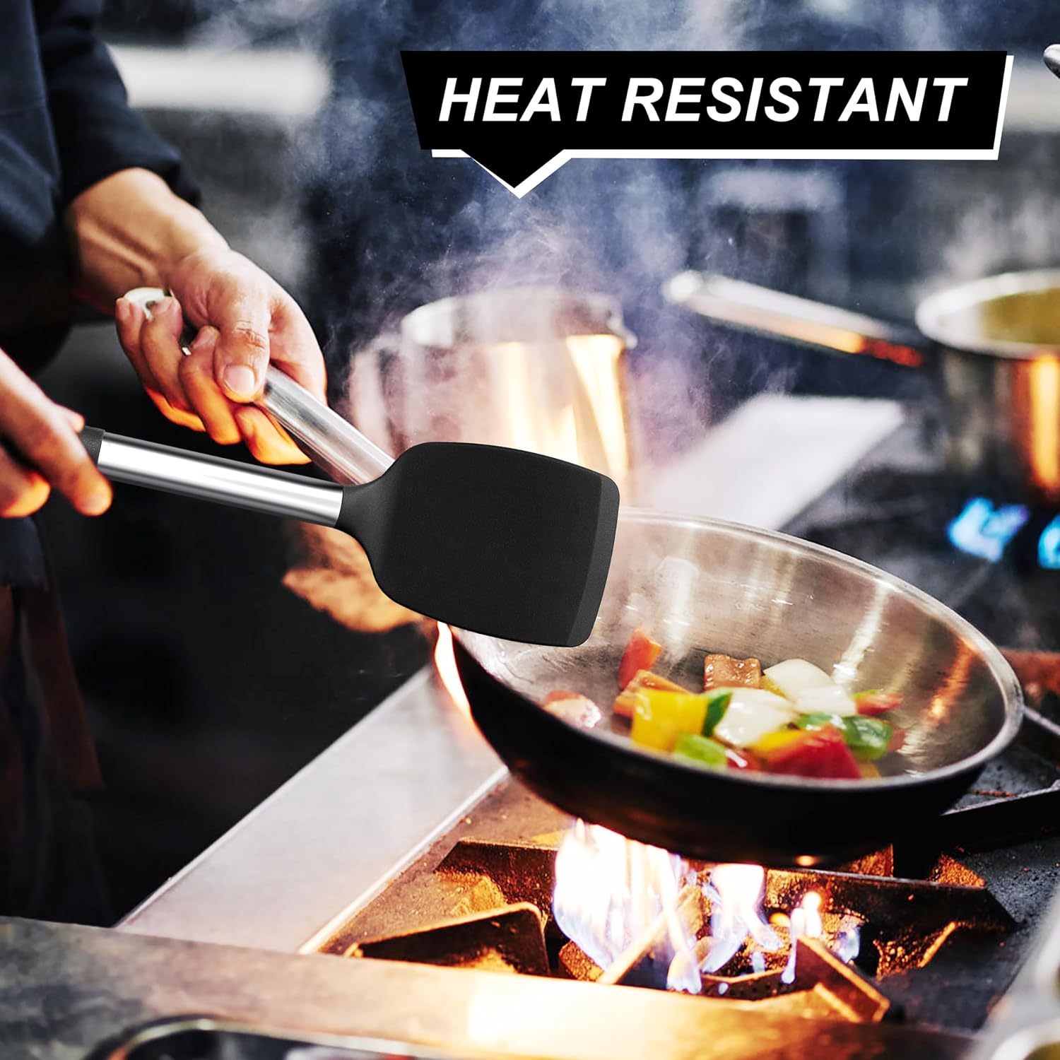 Silicone spatula for cooking 2 pack set kitchen utensils stainless steel black heat resistant Silicone spatula for cooking 2 pack set kitchen utensils stainless steel black heat resistant
