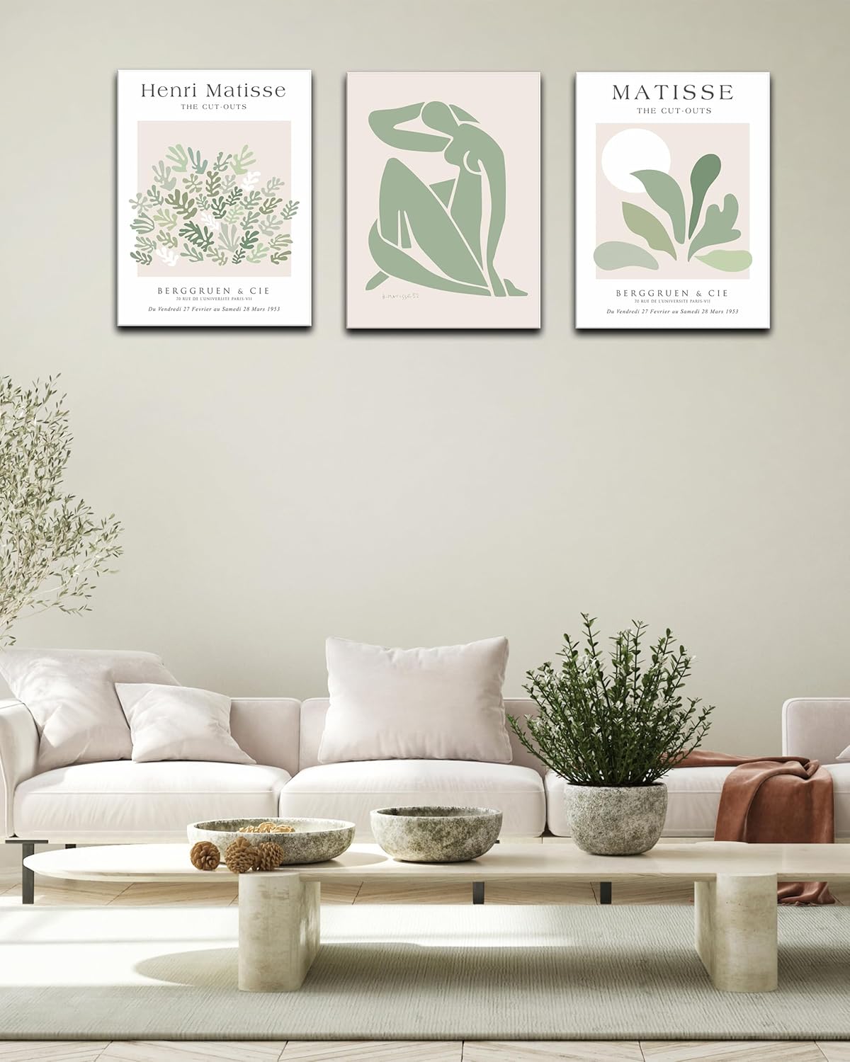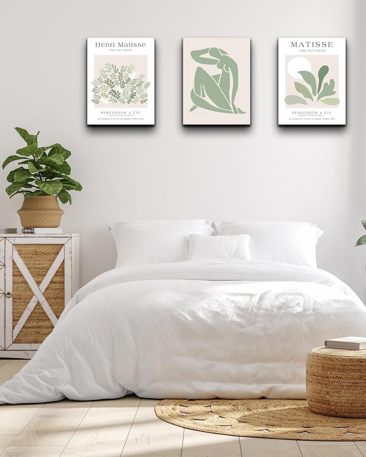 💘 Matisse Wall Art Print Set: This set includes three art prints featuring works by the famous French artist Matisse. The minimalist art style presents vivid colors, simple patterns, and an independent spirit, conveying a sense of freedom and vitality