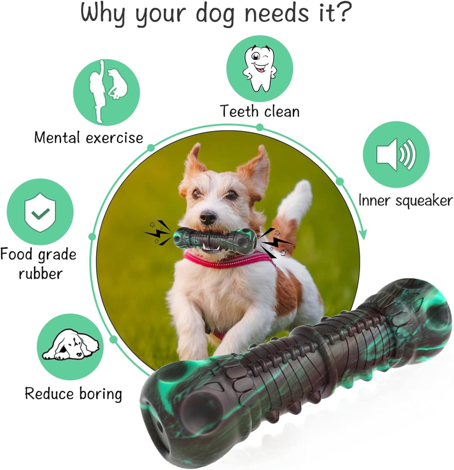 HETOO Dog Chew Toys Indestructible Dog Toys for Small Puppy Breed Durable Rubber Squeaky Dog Toy for Aggressive Chewers Tough Strong Bone Dog Toy Outdoor Interactive Dog Toys Birthday Gifts Mix Green