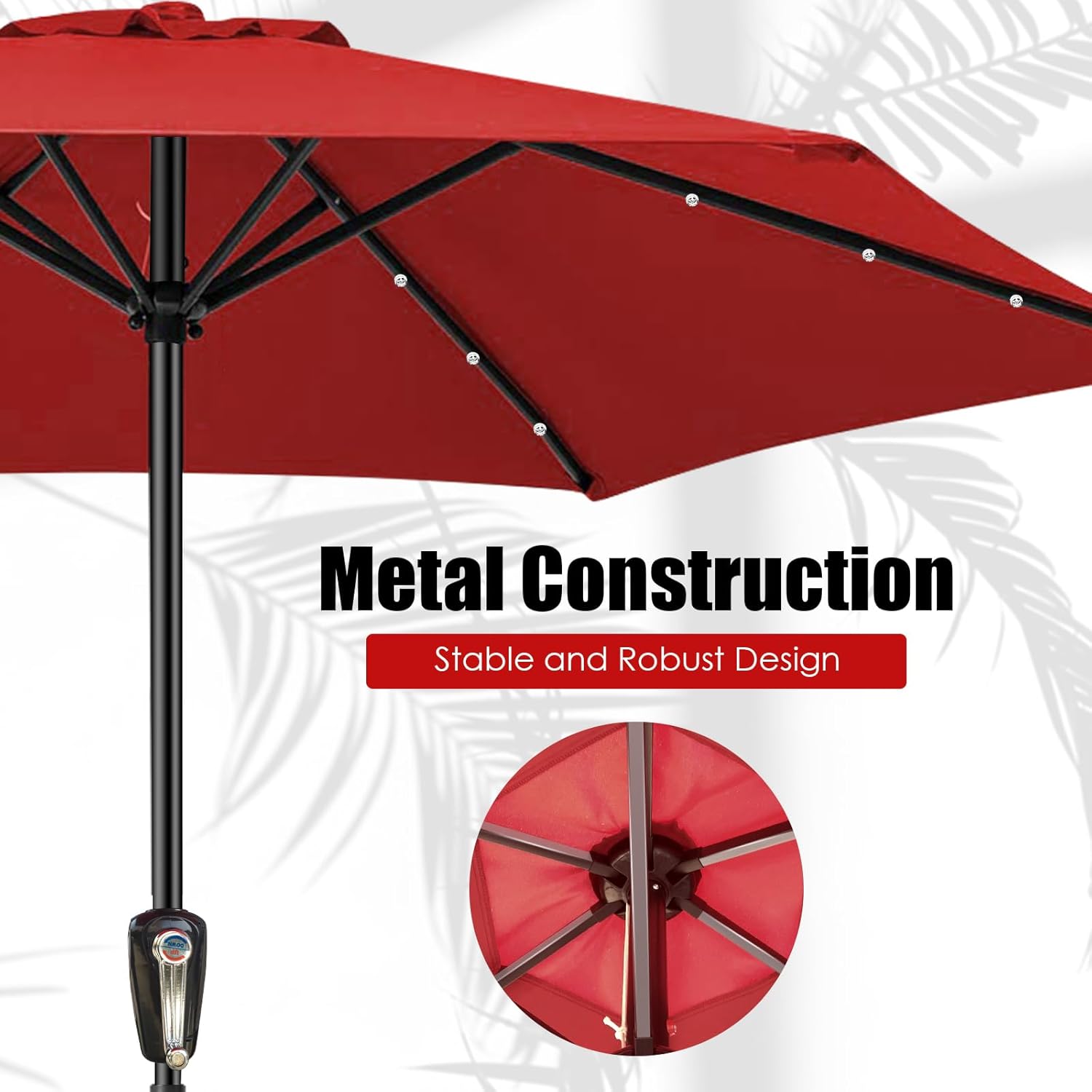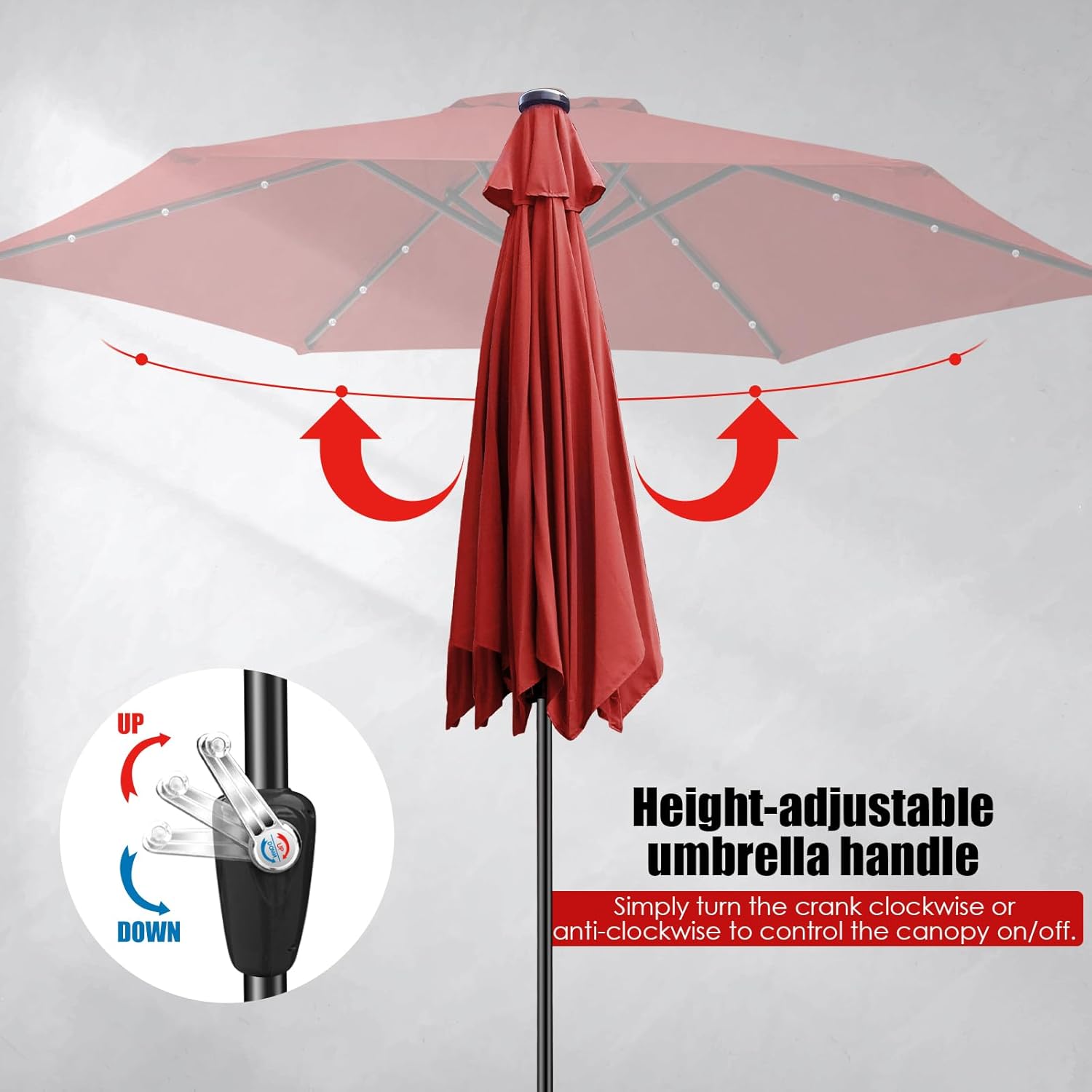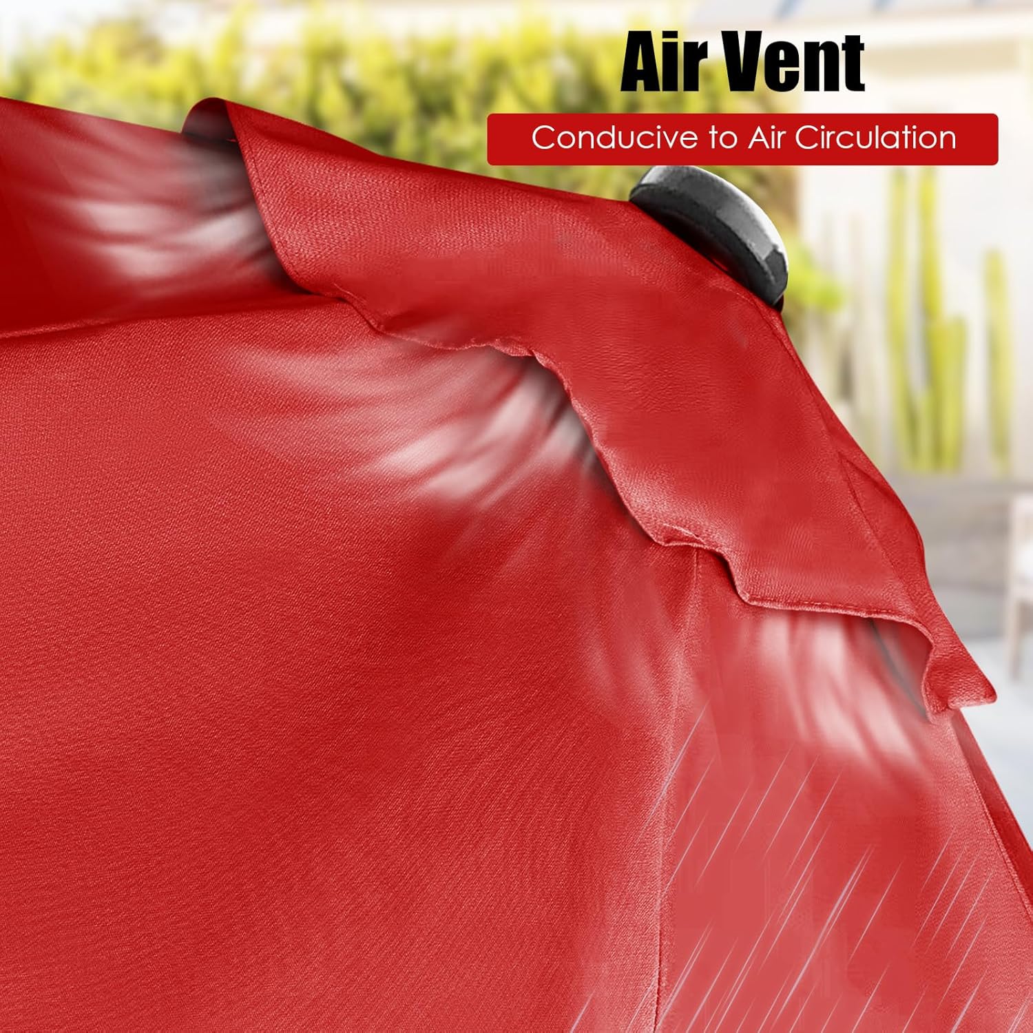 HEVOL Garden Parasol Umbrella, Patio Parasol Outdoor with 18 LED Lights, Patios Table Umbrellas with UV Protection, Waterproof Parasols for Yard, Deck, Beach, Pool, Red